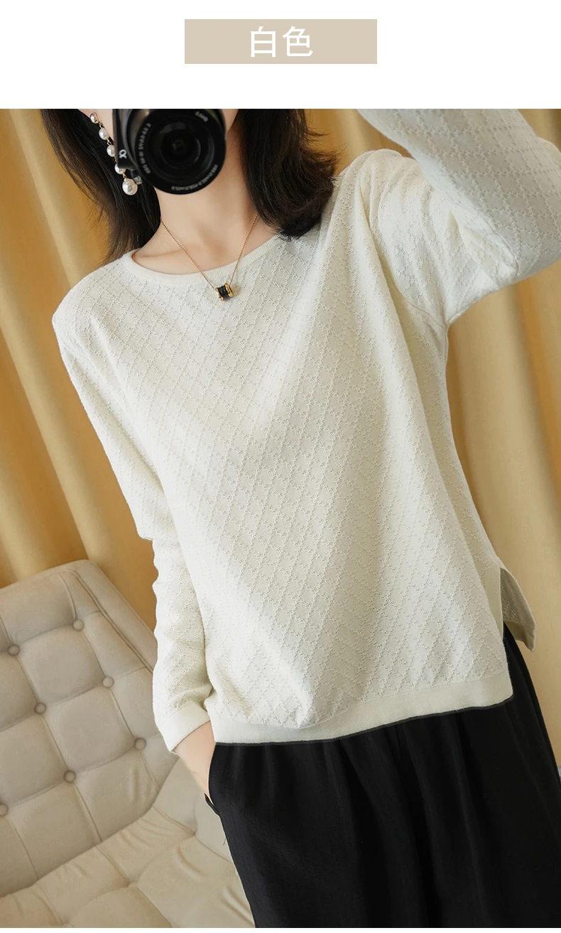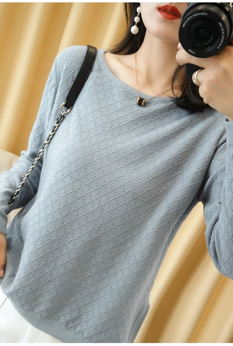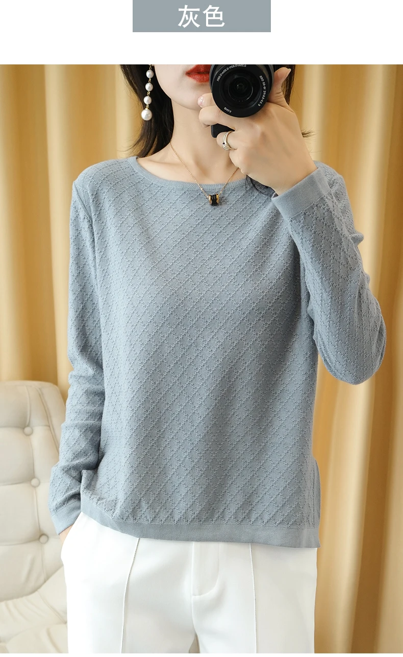 Свитер женский хлопковый, с круглым вырезом, свободный