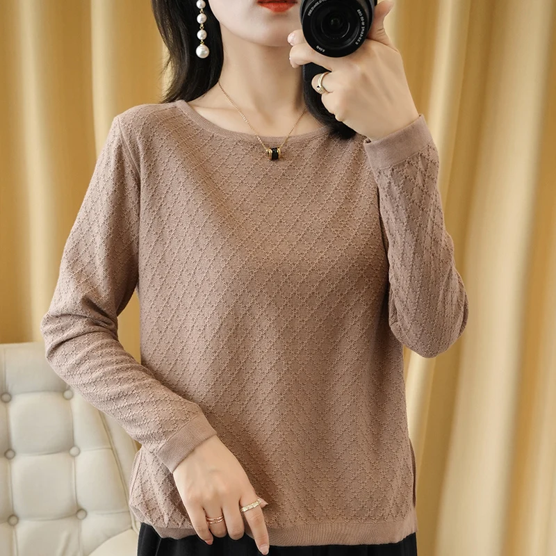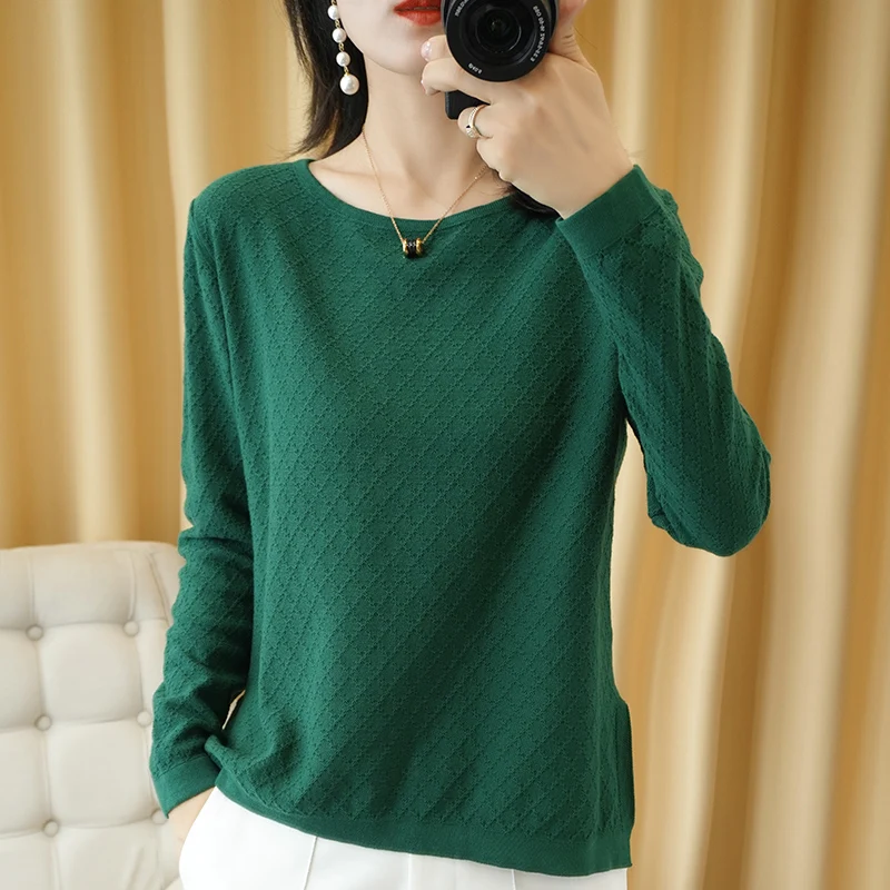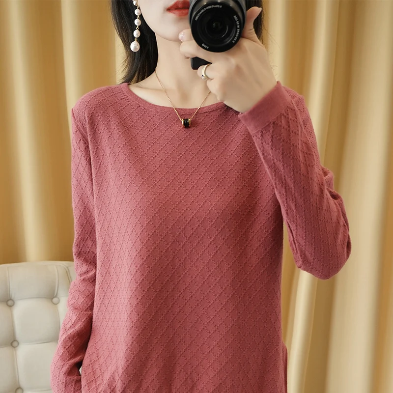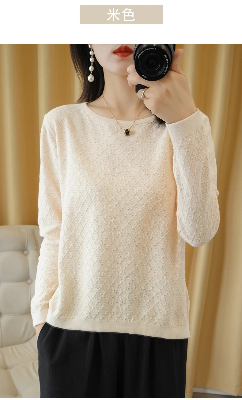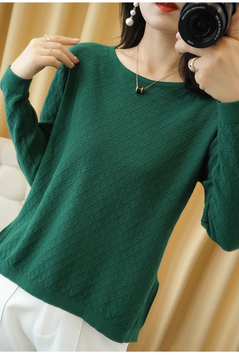 Свитер женский хлопковый, с круглым вырезом, свободный