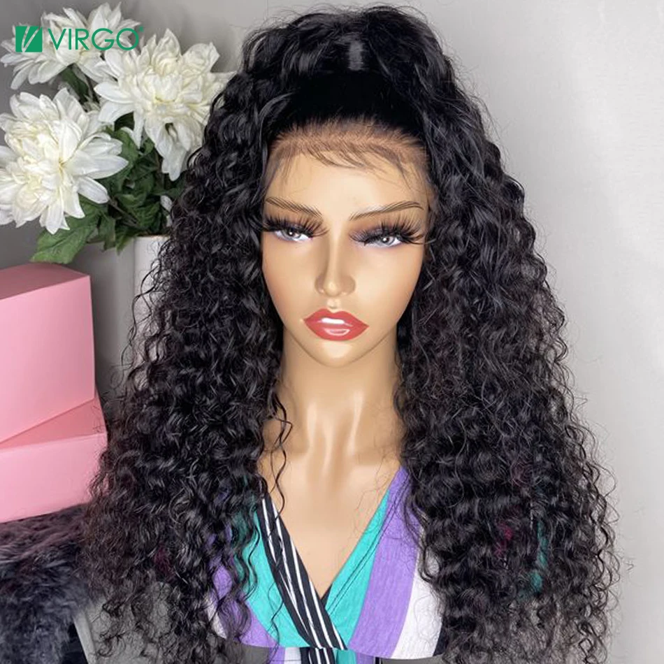Парик из кудрявых человеческих волос 13x4, парики на шнурке с водно...