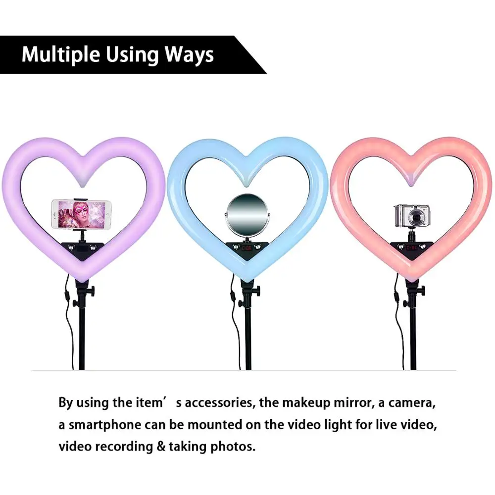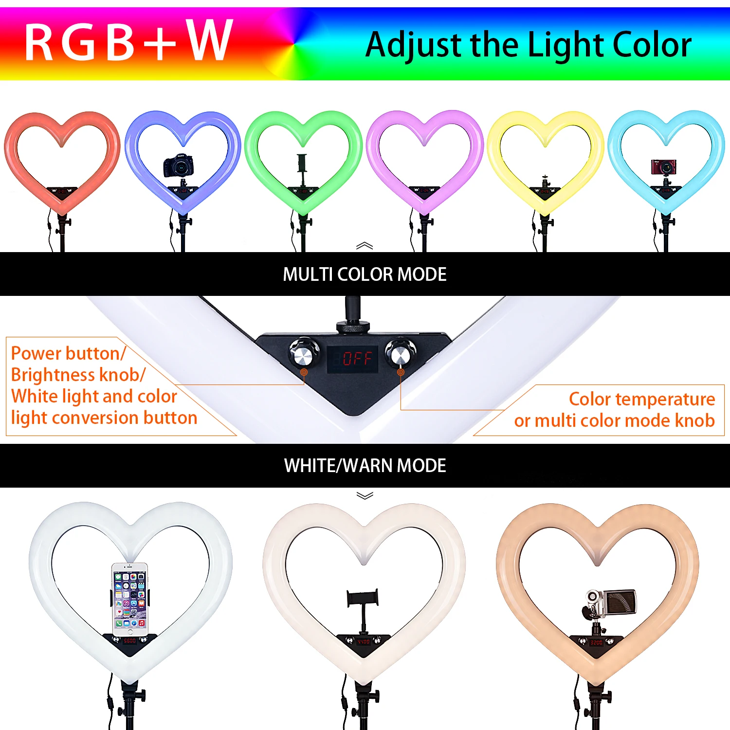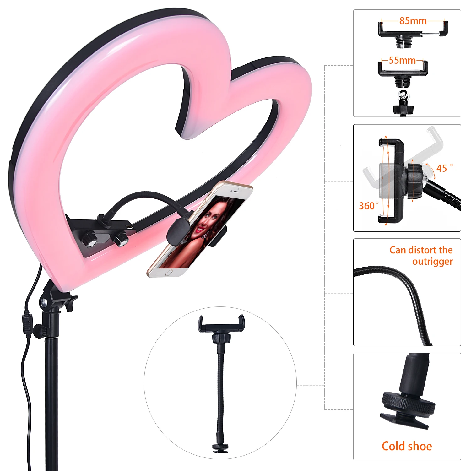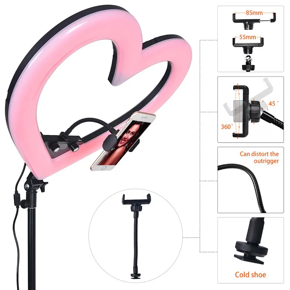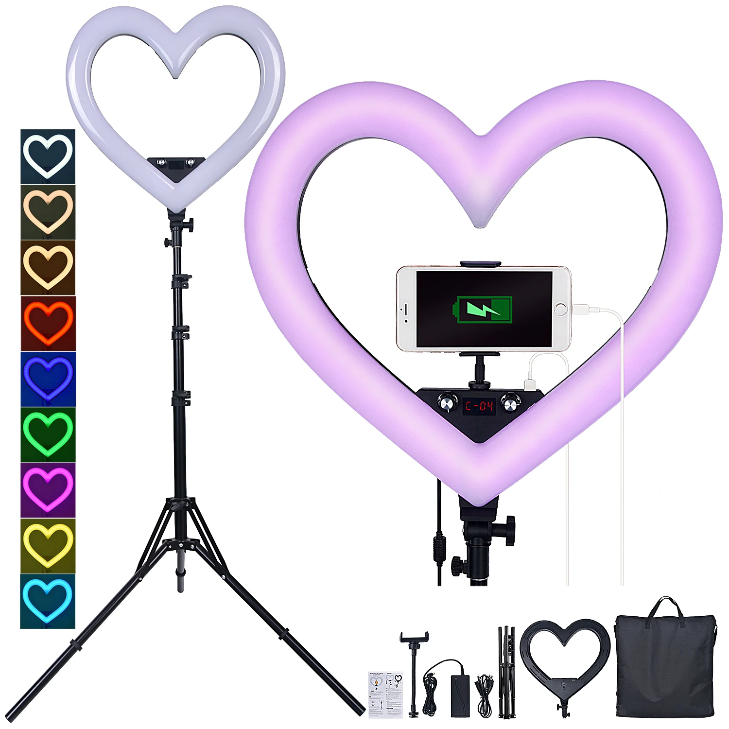 Fosoto 19 дюймов Led RGB кольцевой светильник в форме сердца кольцевая лампа для фотосъемки с подставкой для штатива для телефона Tik Tok Makeup Studio