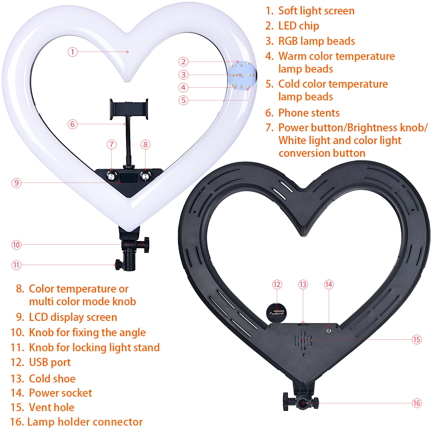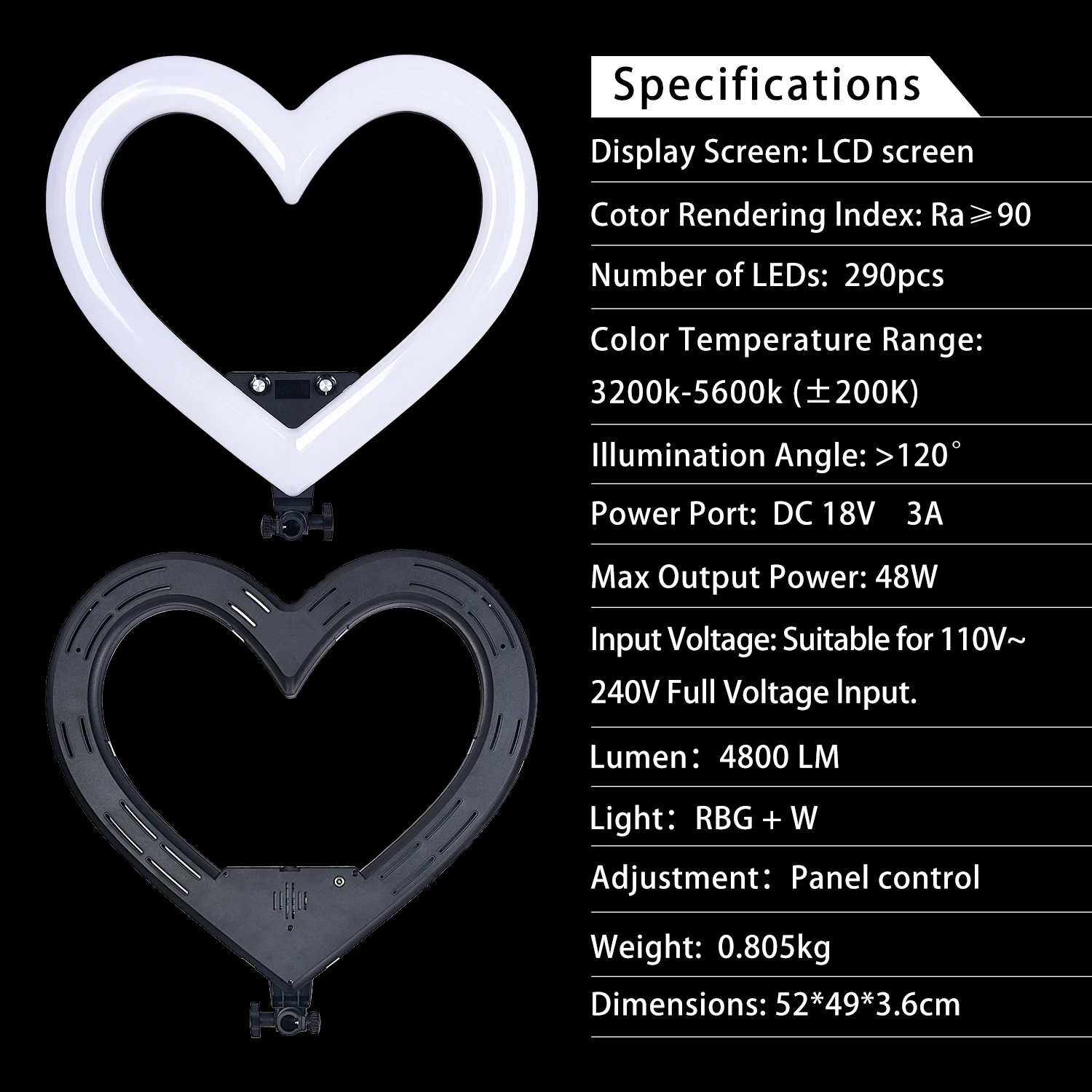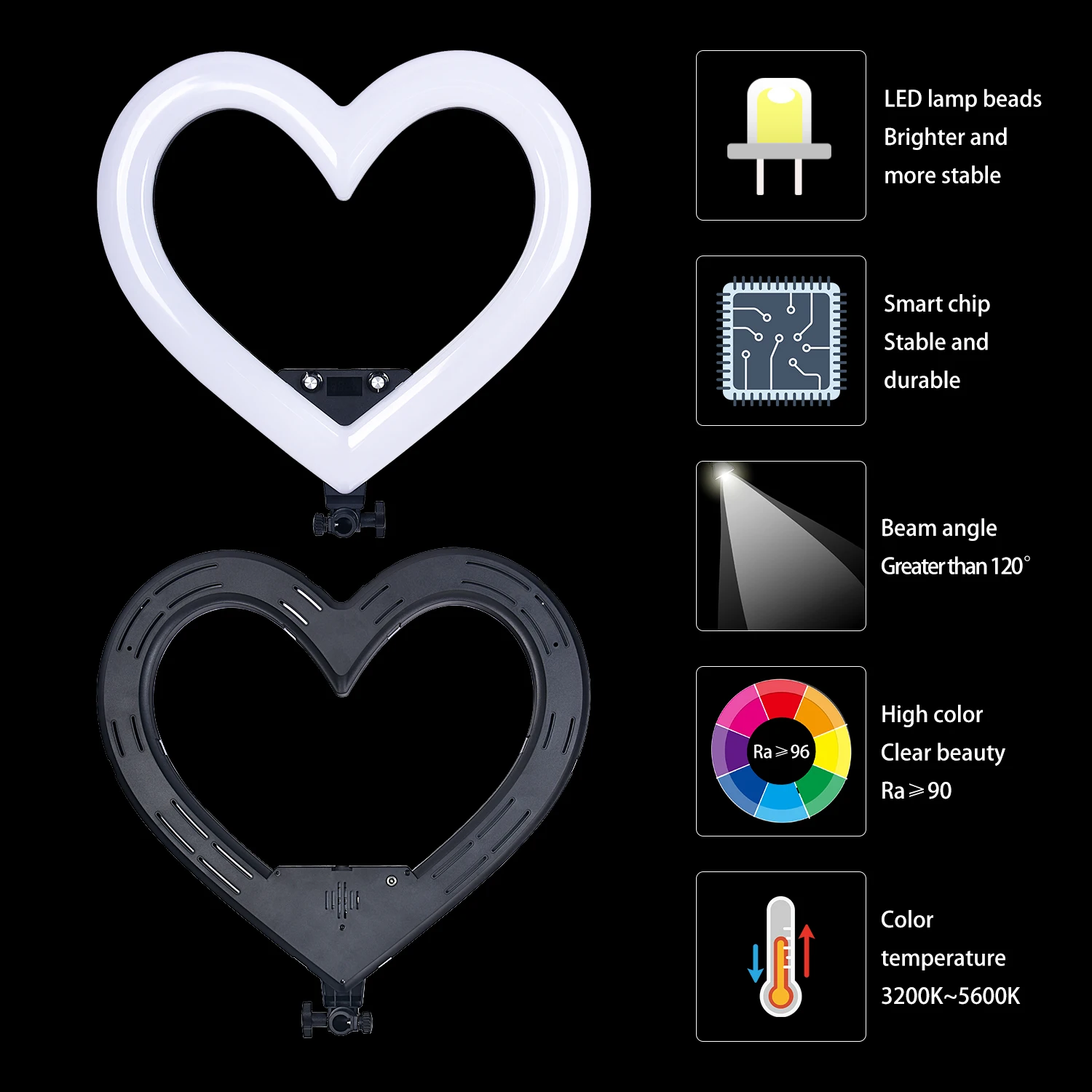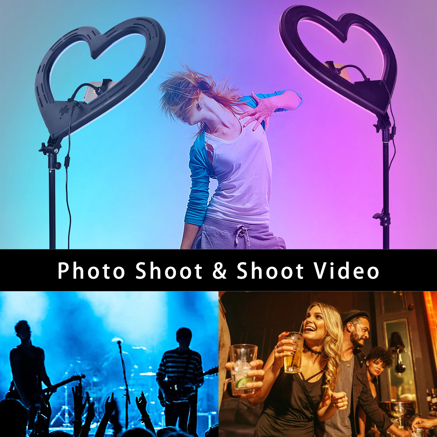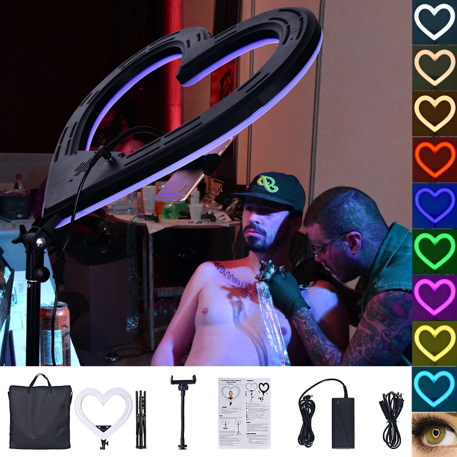 Fosoto 19 дюймов Led RGB кольцевой светильник в форме сердца кольцевая лампа для фотосъемки с подставкой для штатива для телефона Tik Tok Makeup Studio
