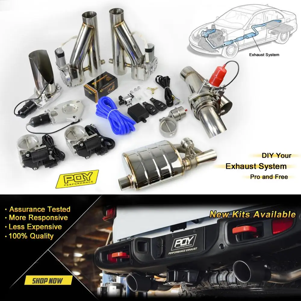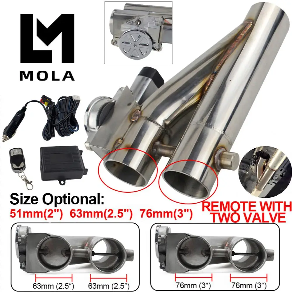 Универсальная нержавеющая сталь 304 2 "2,5" 3 "электрическая выхлопная труба с вырезами и двойным клапаном с дистанционным управлением