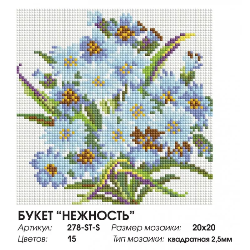 "Букет Нежность" Алмазная мозаика на подрамнике 20х20 см. Белоснежка. 278-ST-S