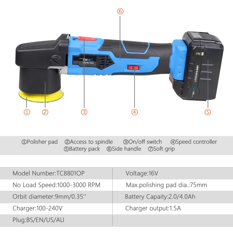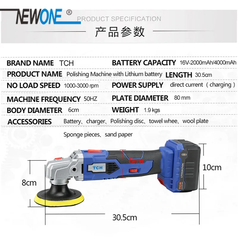 Полировальная машинка NEWONE, 16 В, беспроводная, с переменной скор...