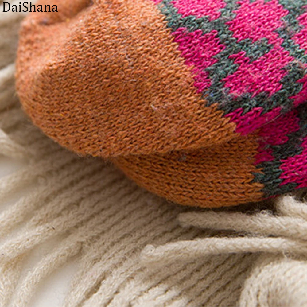 Новинка 2021, зимние плотные теплые шерстяные женские носки, цветные носки, модные повседневные хлопковые носки с цветами в этническом стиле