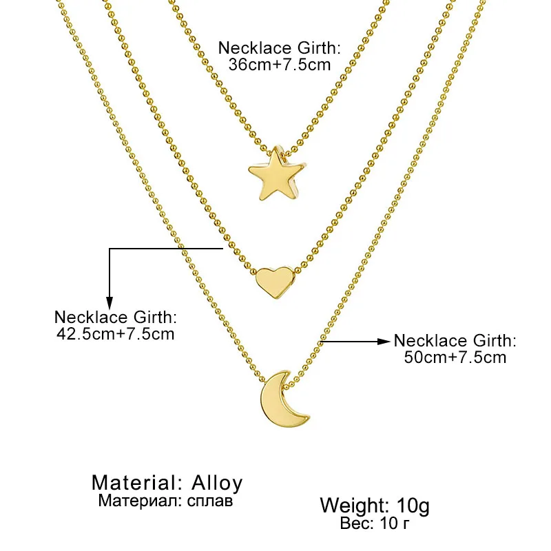 ModelEN Fashion Boho Simple Multi-Layer Heart Star Moon Charm Necklace