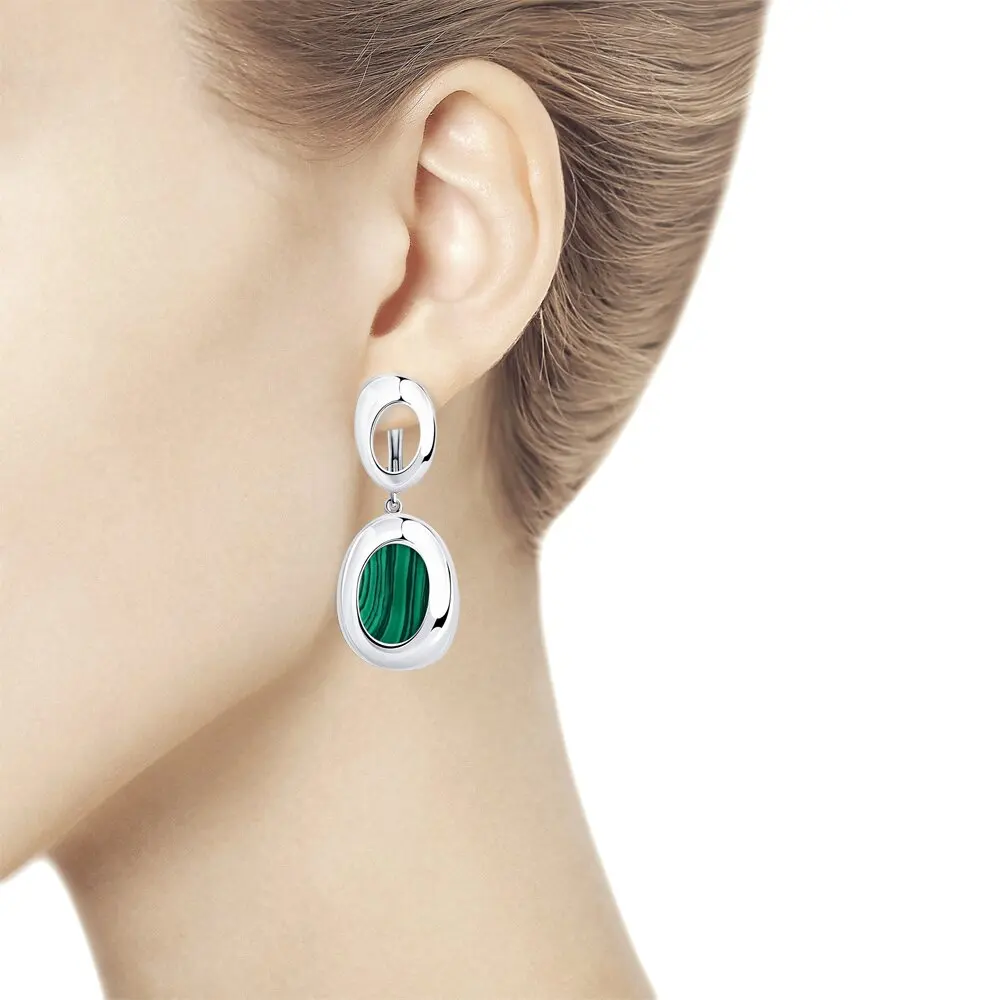 Серьги SOKOLOV из серебра с малахитами, Серебро, 925, Женские, Серьги 2022 тренд, Оригинальная продукция