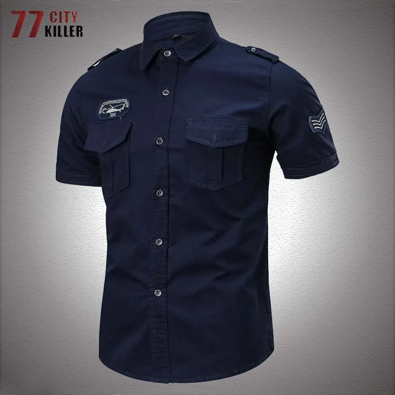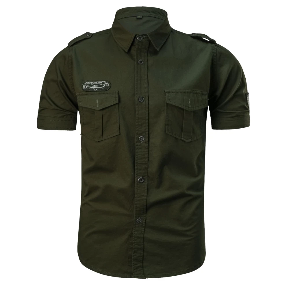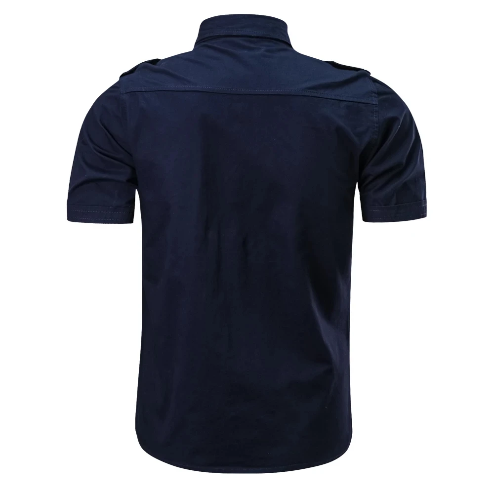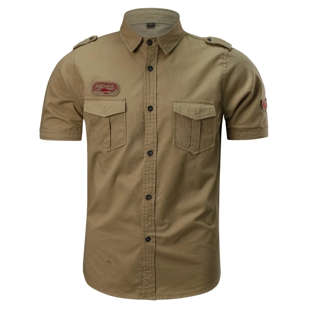 Мужская Летняя дышащая рубашка-карго из 100% хлопка с короткими рукавами и вышивкой