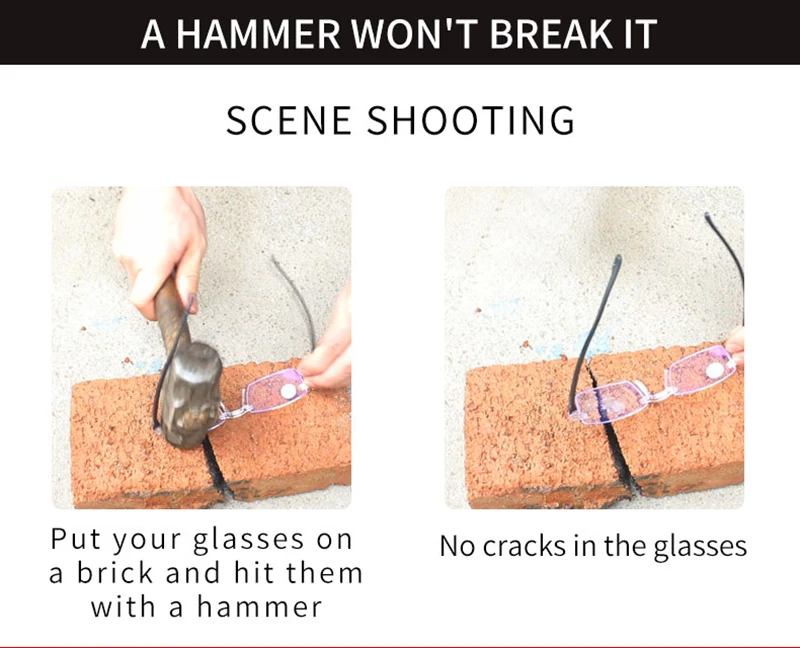 Очки не пронрессивные, как пишет продавец, но бифокальные-внизу на стеклах линзочка, попросил выслать на +3.0 на линзе +1.25, прислал +3,0 на стекле 0.00.Молотком не бил. не проверял, да это и не нужно. Описание не точное, очки не прогрессивные!