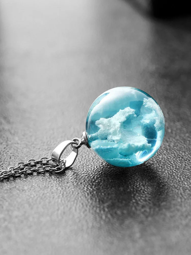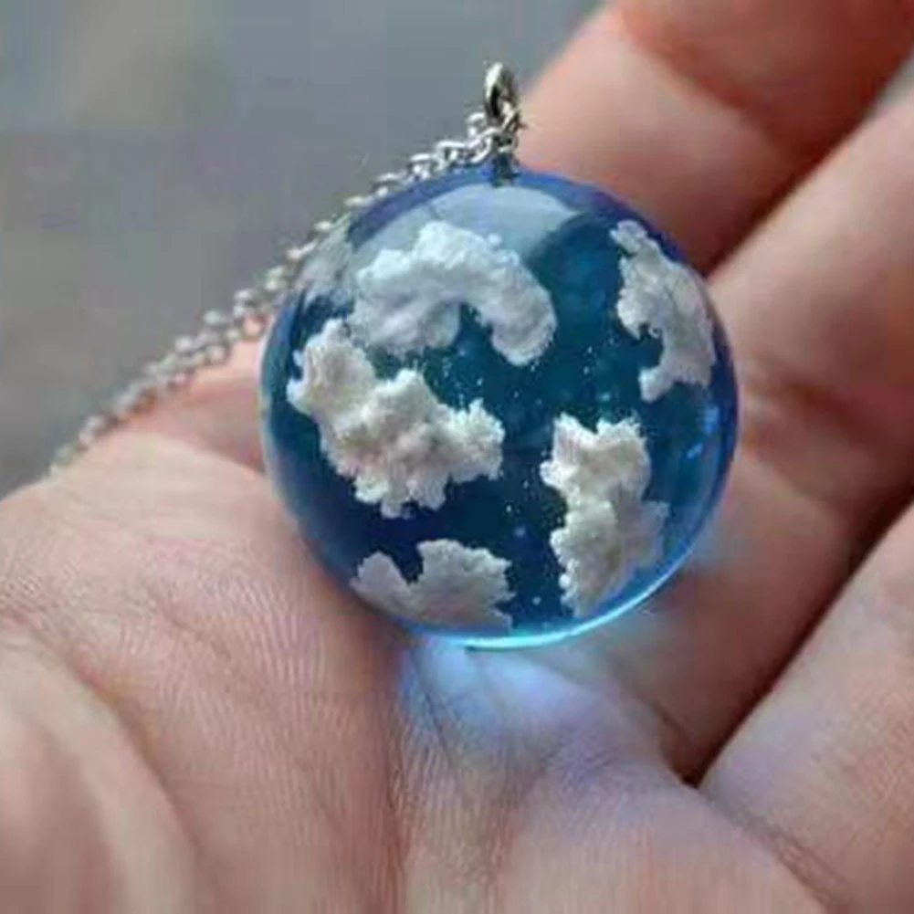 Цепочка с прозрачным кулоном Женская, креативное ожерелье с голубым небом и белым облаком из смолы, светящаяся цепочка с шариком, бижутерия, хороший подарок