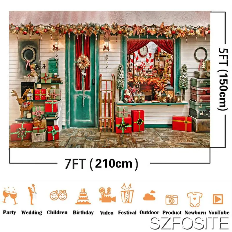 Фон для фотографирования новорожденных с изображением дома с изображением замка, рождественской шапки, снега, праздника вечерние, детей, украшения для детской ванны