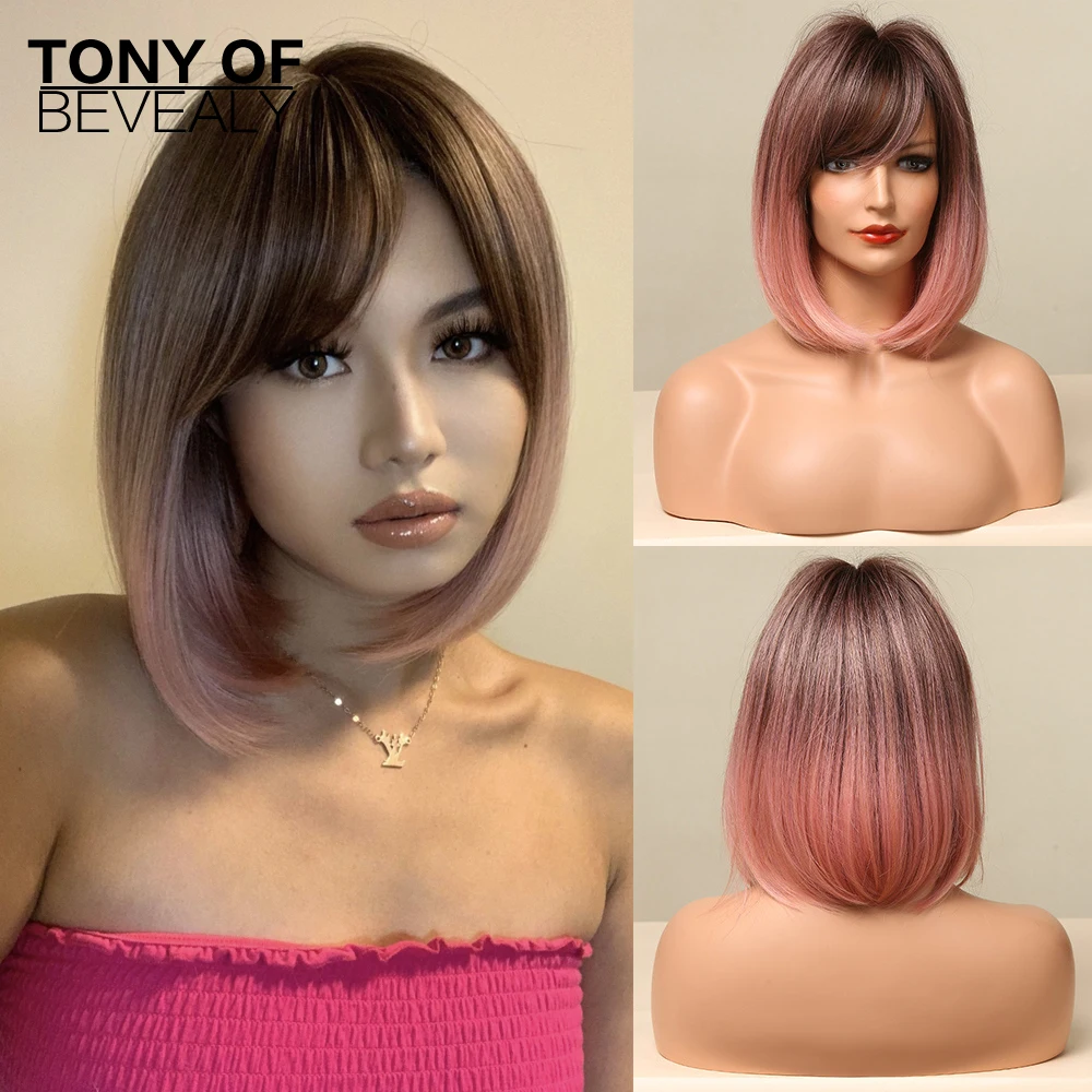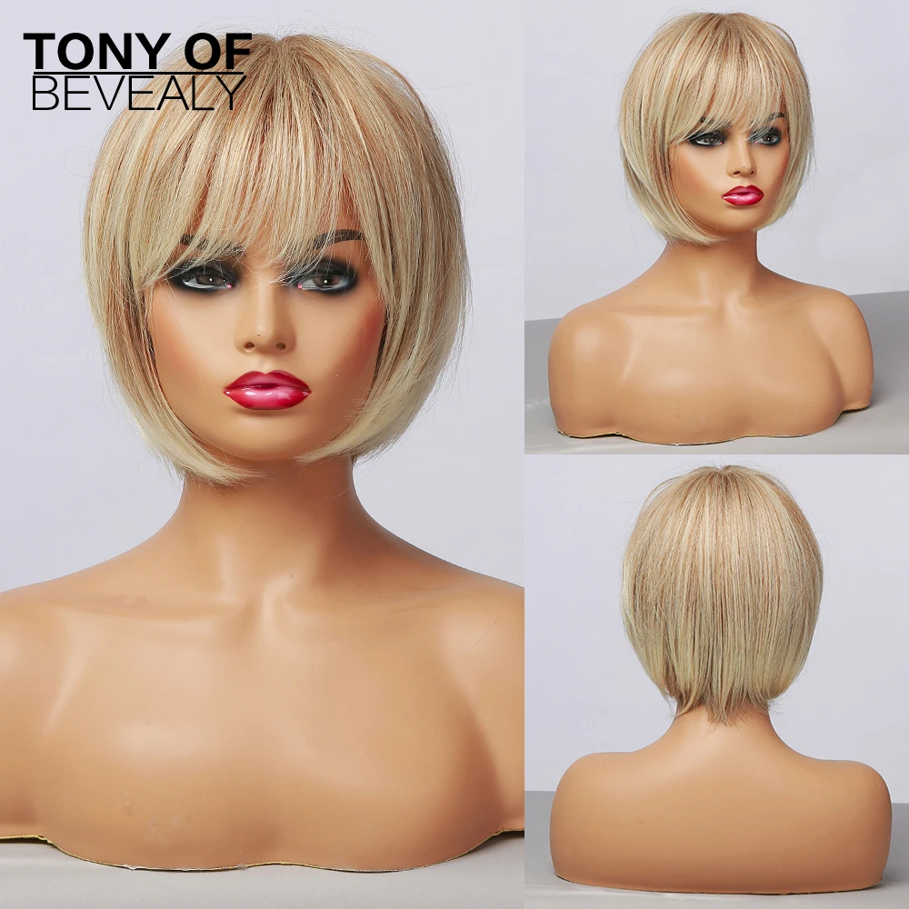 Парики короткие прямые синтетические для женщин, парики для косплея, с коричнево светильник Лой блонд, с эффектом омбре, с боковой частью, термостойкие