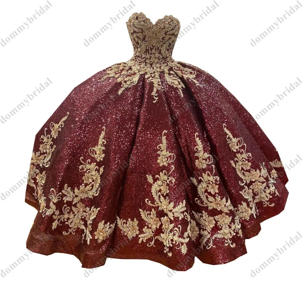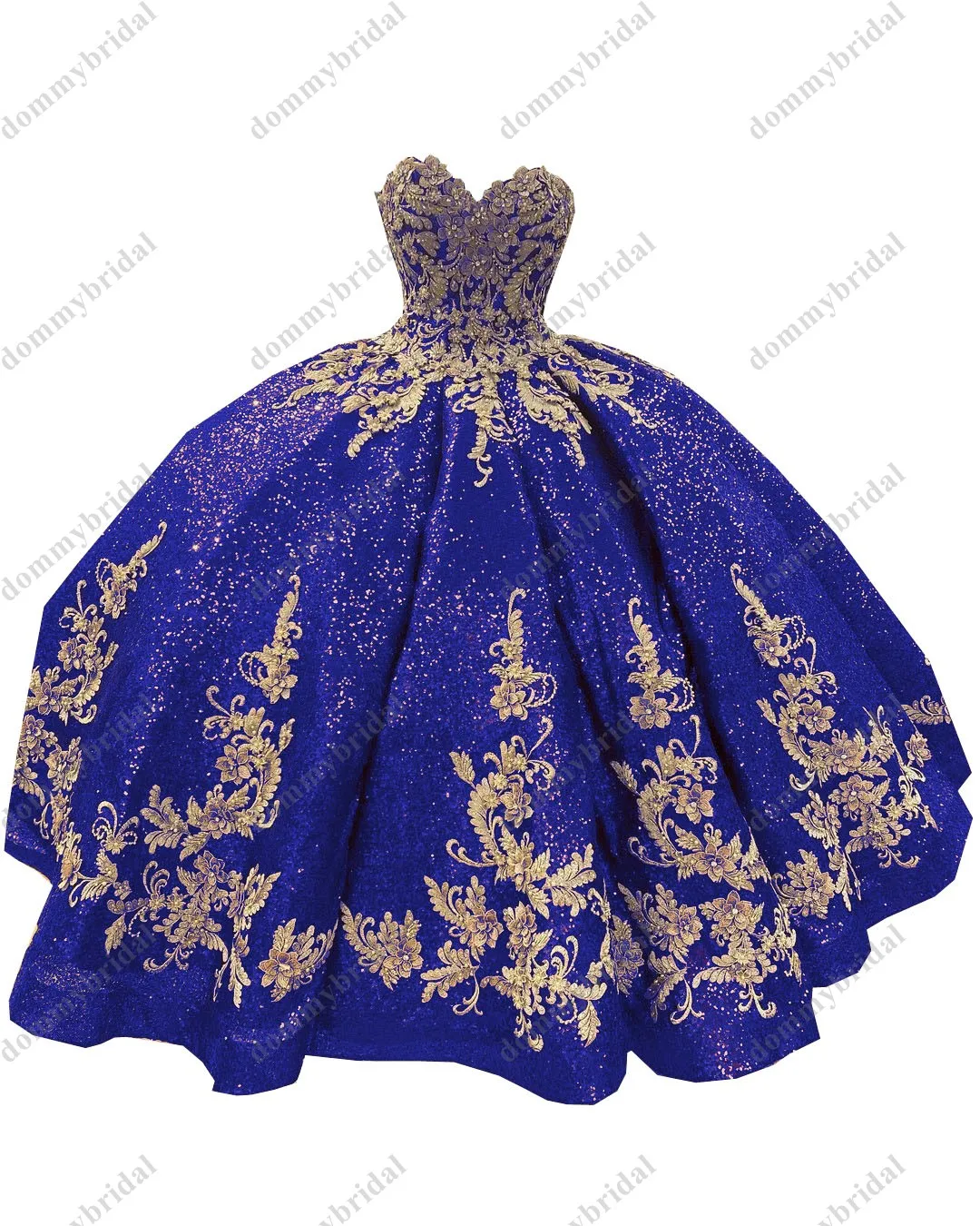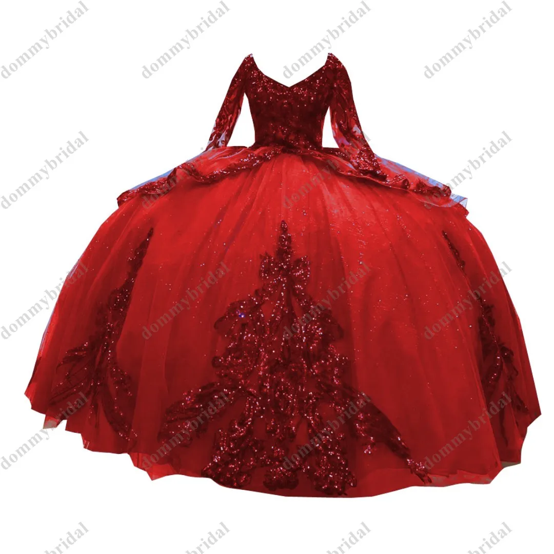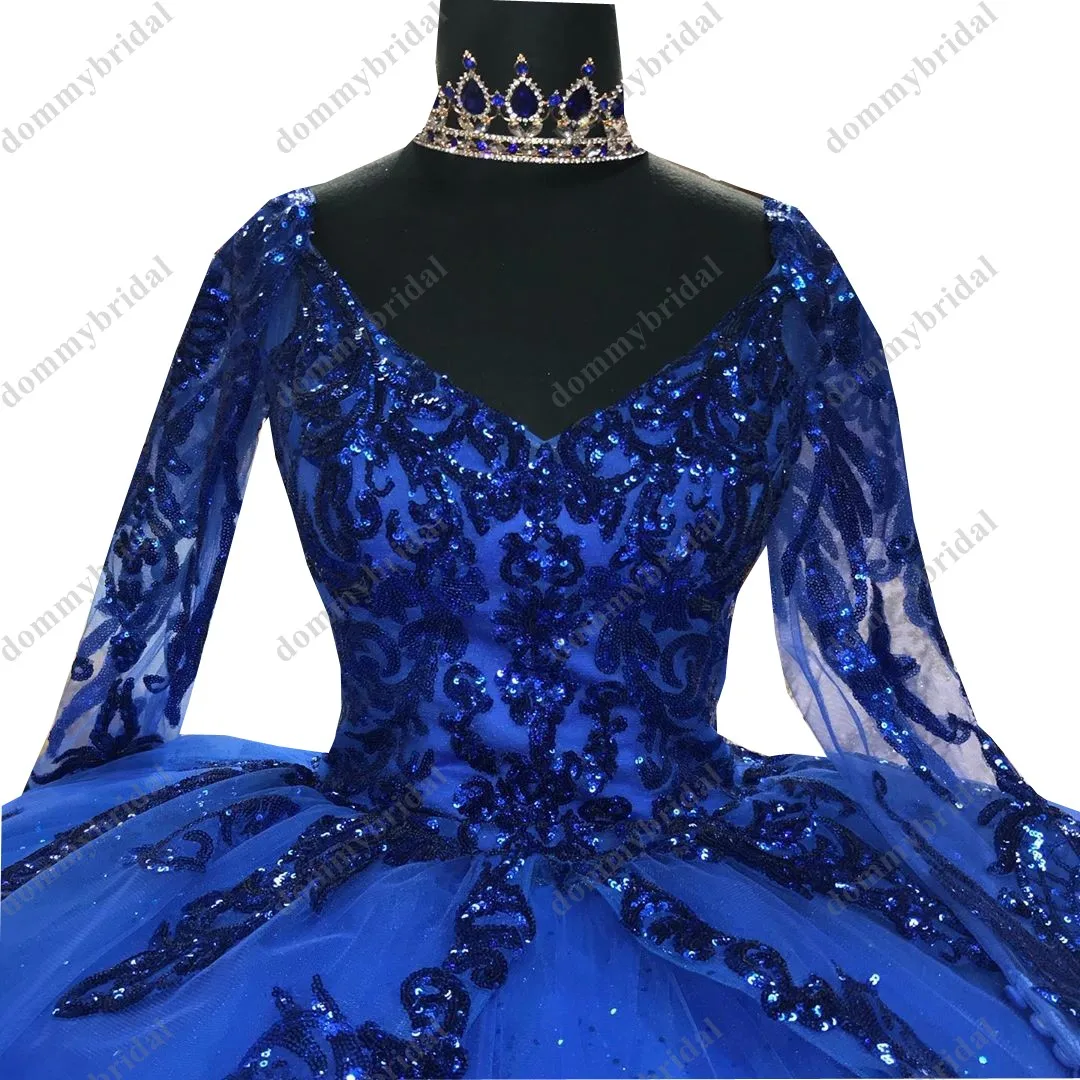 Потрясающие ярко-синие красные Бальные платья с V-образным вырезом, блестками, кружевные вечерние платья Quinceanera на 15 лет, Мексиканский Шарр, с длинным рукавом