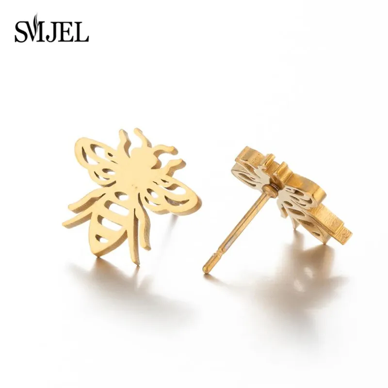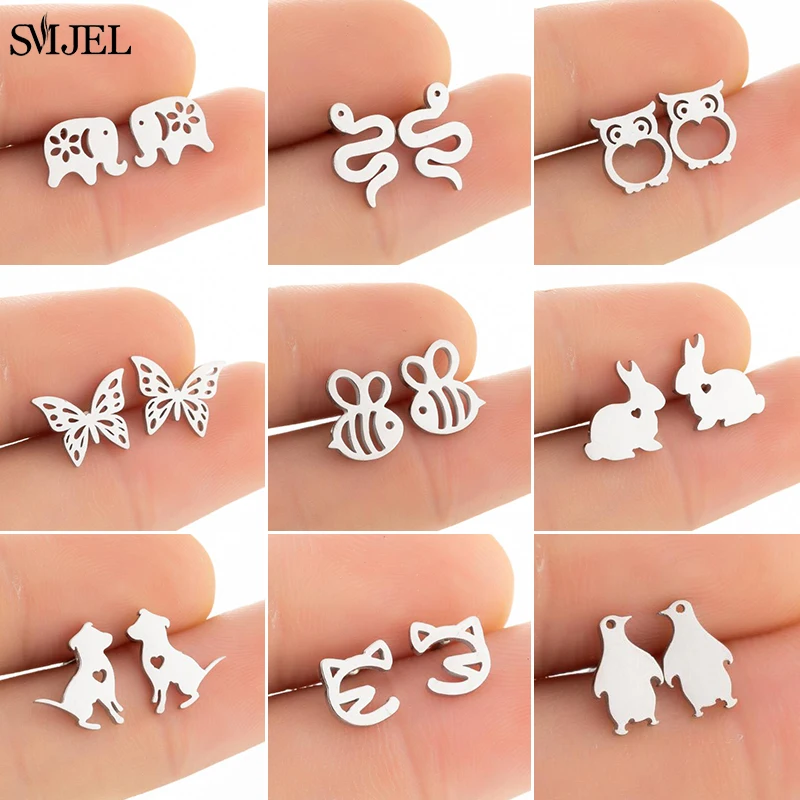 Серьги-гвоздики с животными мини из нержавеющей стали для женщин и девушек, милые серьги в виде кролика, кошки, пчелы, собаки, мышки, ювелирные изделия