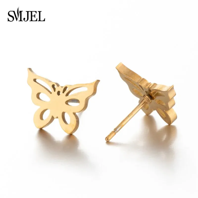 Jisensp простой дизайн полые бабочки из нержавеющей стали серьги-гв...