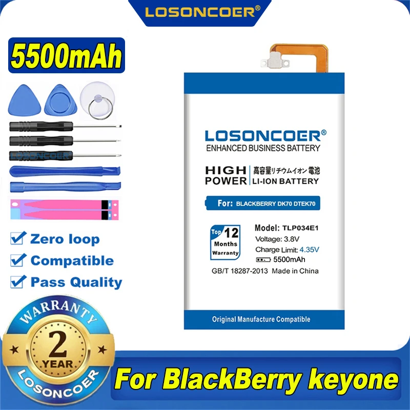 100% Оригинальный аккумулятор LOSONCOER TLP034E1 5500mAh BAT-63108-003 для BlackBerry keyone / alcatel DK70 DTEK70
