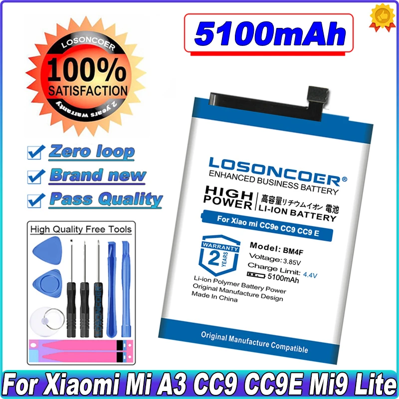 100% оригинал LOSONCOER 5100 мАч BM4F батарея для Xiaomi Mi A3 CC9e CC9 CC9 E Mi 9 Lite Мобильный телефон батареи