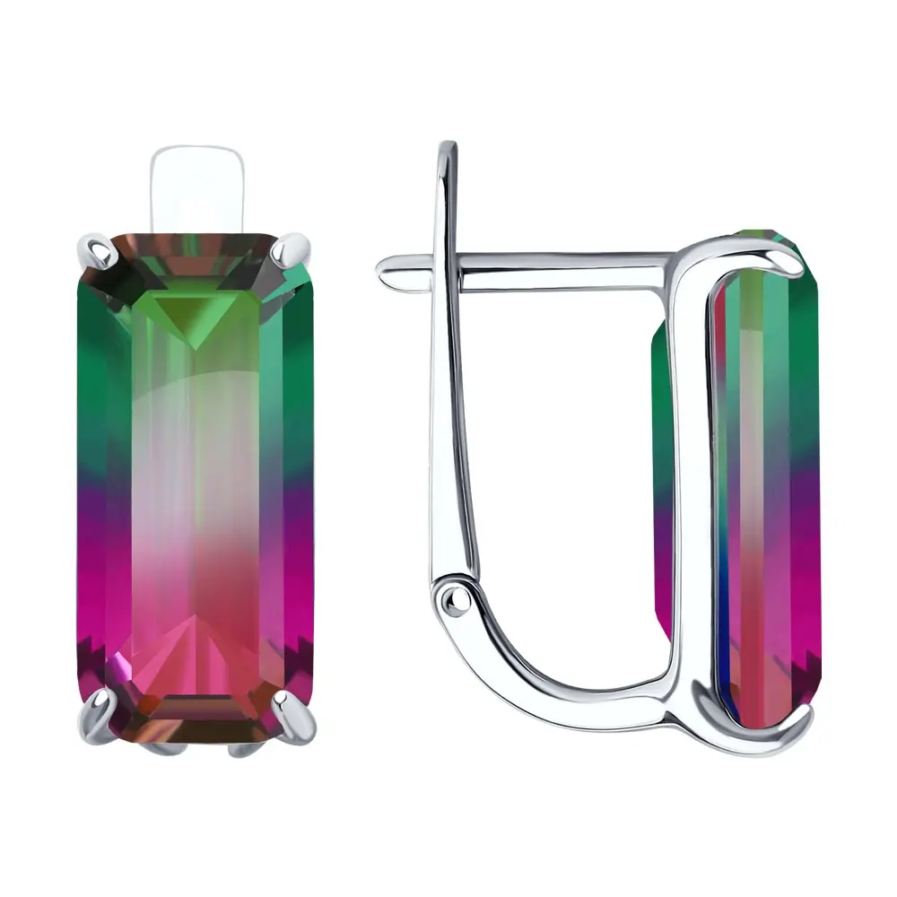 Серьги SOKOLOV из серебра с ситаллами и голубыми и сиреневыми фиани...