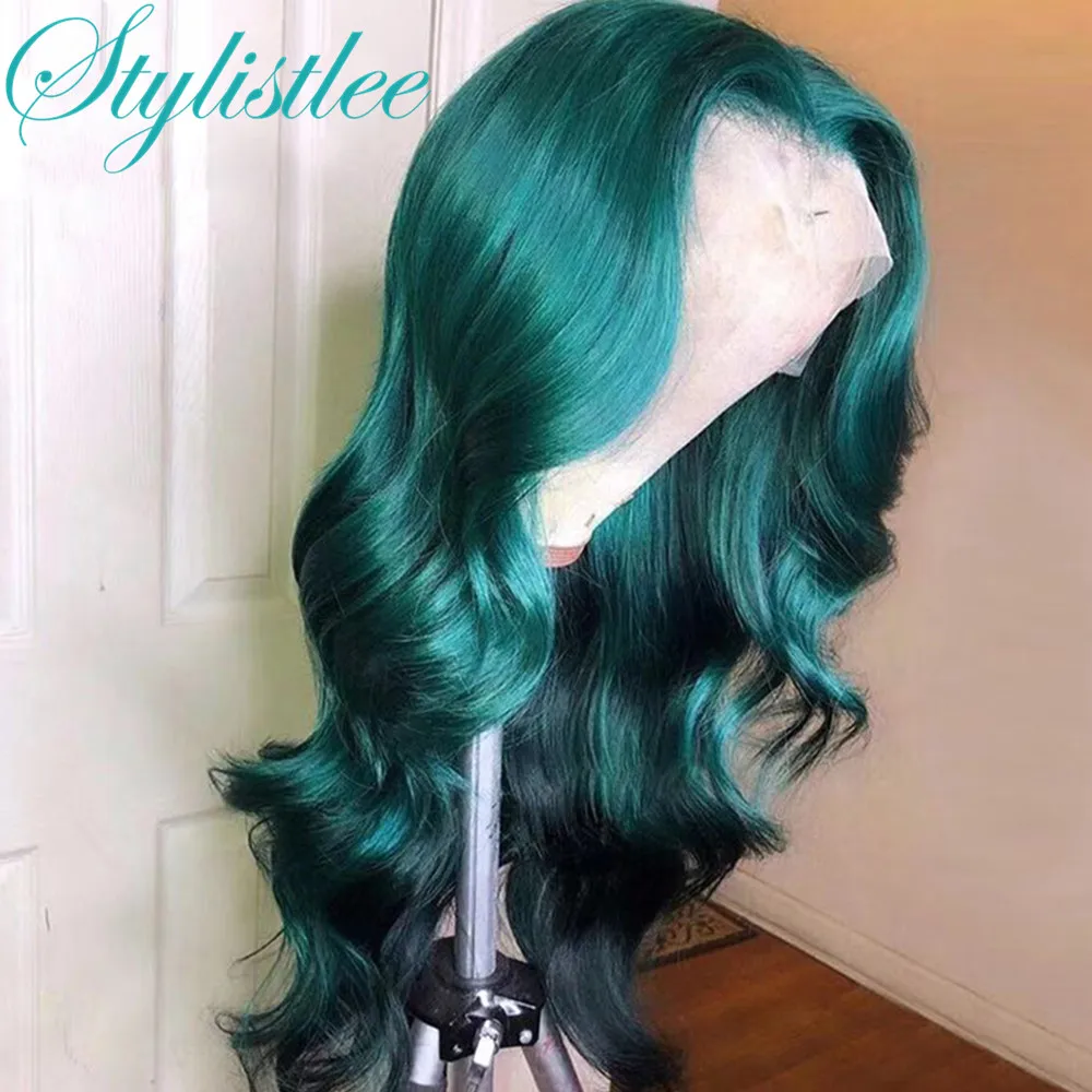 Stylistlee синий зеленый 13x4 кружевной передний al парик цветные человеческие волосы парики для черных женщин влажные и волнистые тела волна кружева передний парик Часть Кружева волос парики