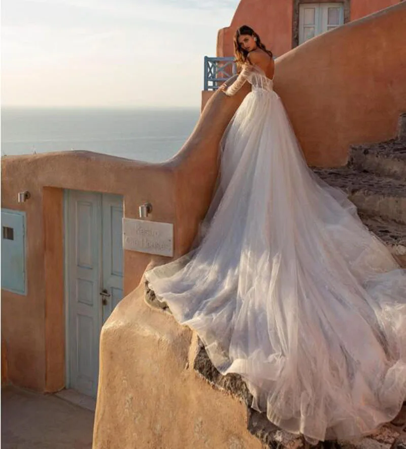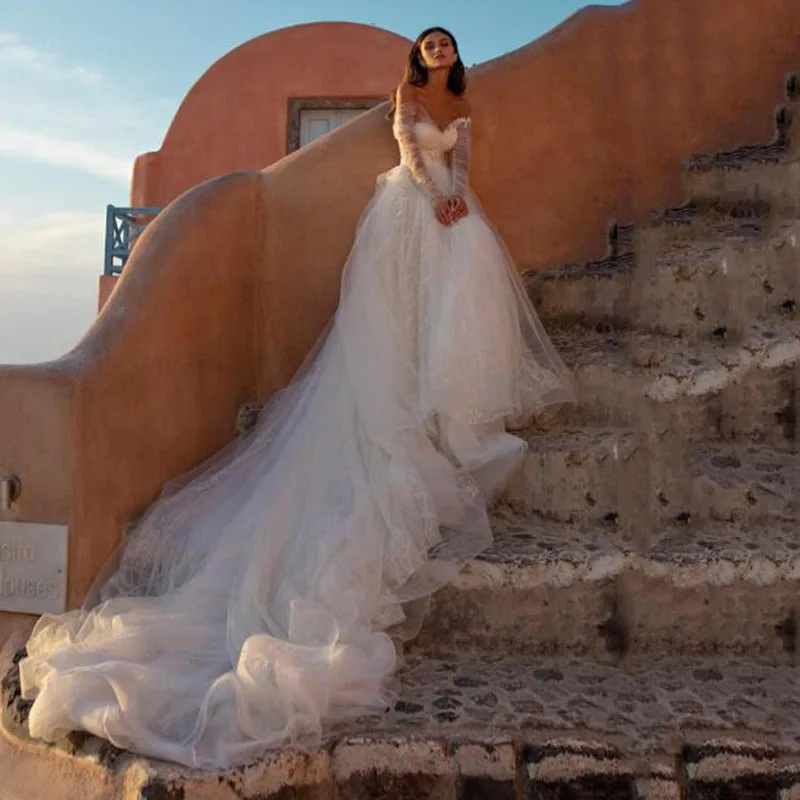 Женское свадебное платье со шлейфом MYYBLE, кружевное платье невест...