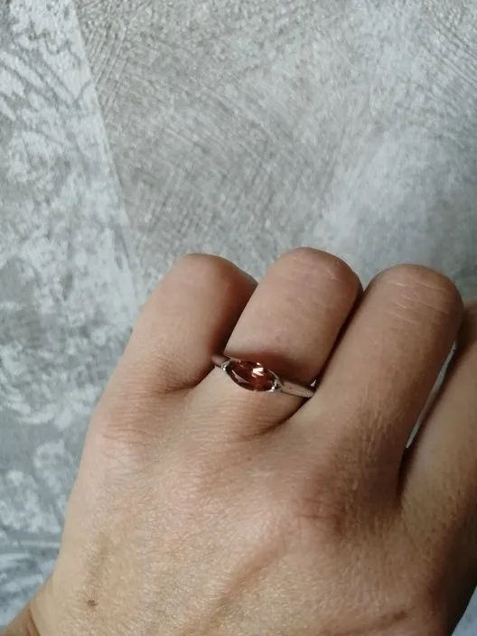 Кольцо тренд 2021 из родированного серебра c гранатом АЛЬКОР. Беспл...