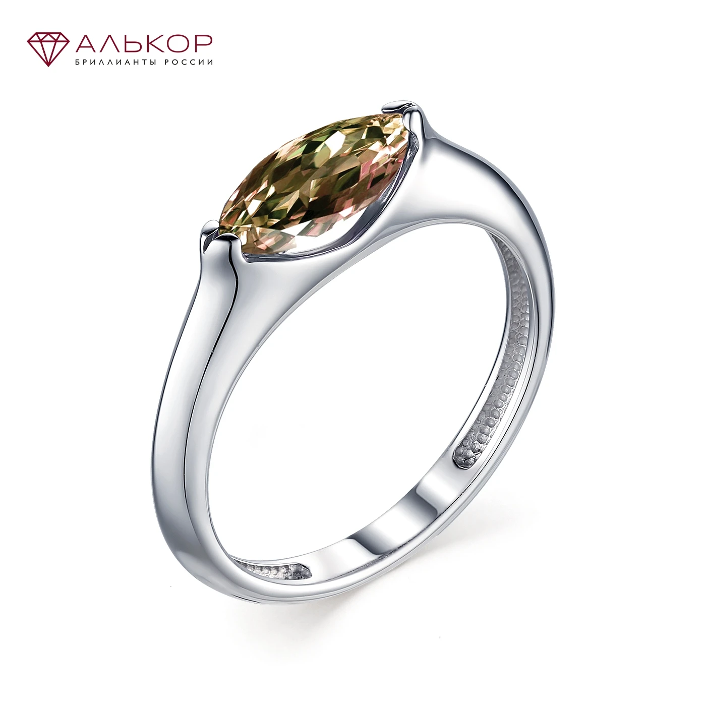 Кольцо тренд 2021 из серебра 925 с покрытием из родия, вставка: юве...
