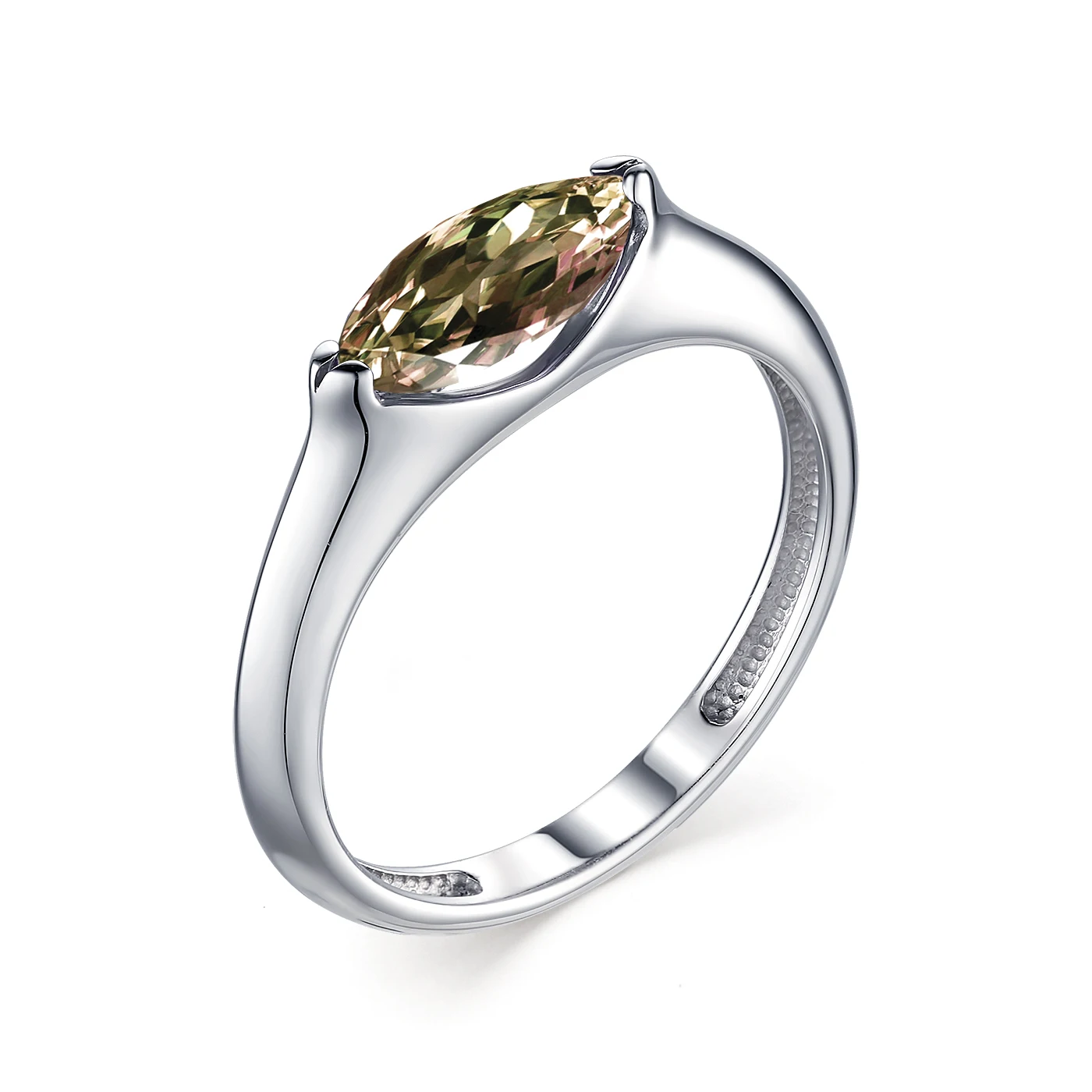 Кольцо из серебра. Вставка: султанит искусственный. Ширина изделия: 5 мм. Стильный гарнитур из серебра 925 пробы с султанитами – синтетическими камнями-хамелеонами. Они меняют свой цвет в зависимости от освещения: от золотисто-коричневого при искусственном свете до яркого травянисто-зелёного в лучах солнца.
