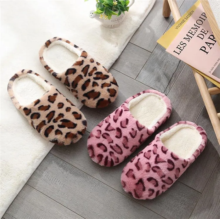 Хлопковые тапочки с леопардовым принтом, плюшевые домашние бесшумны...