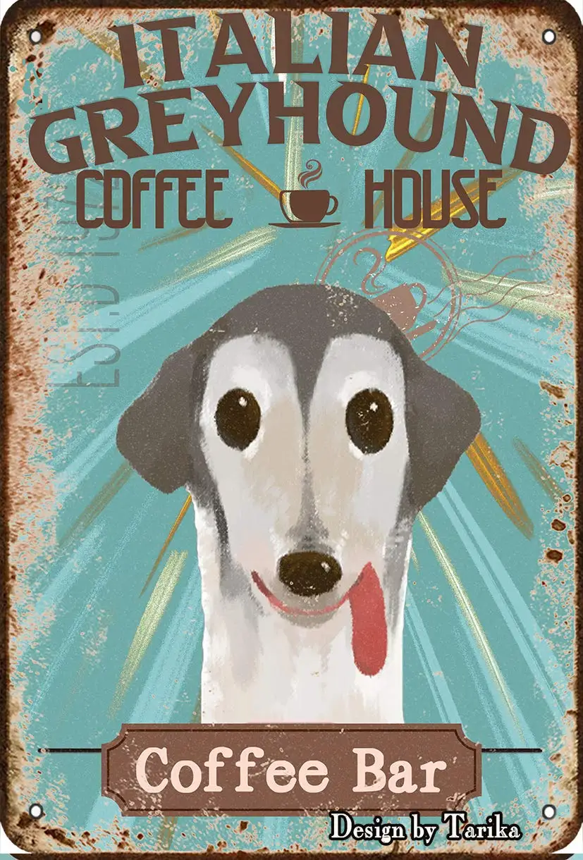 Левретка собака Кофе бар для выгула собак Кофе дом винтажная табличка плакат жестяная вывеска Настенный декор висячие украшения из металла 12X8