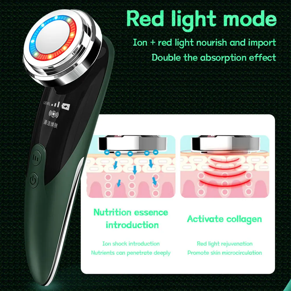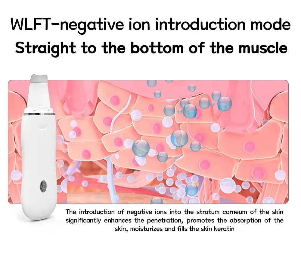 Ультразвуковой массажный скруббер для лица, пилинг, лопата, очиститель пор для лица, светодиодный фотон, мезотерапия, массажер для устранения морщин