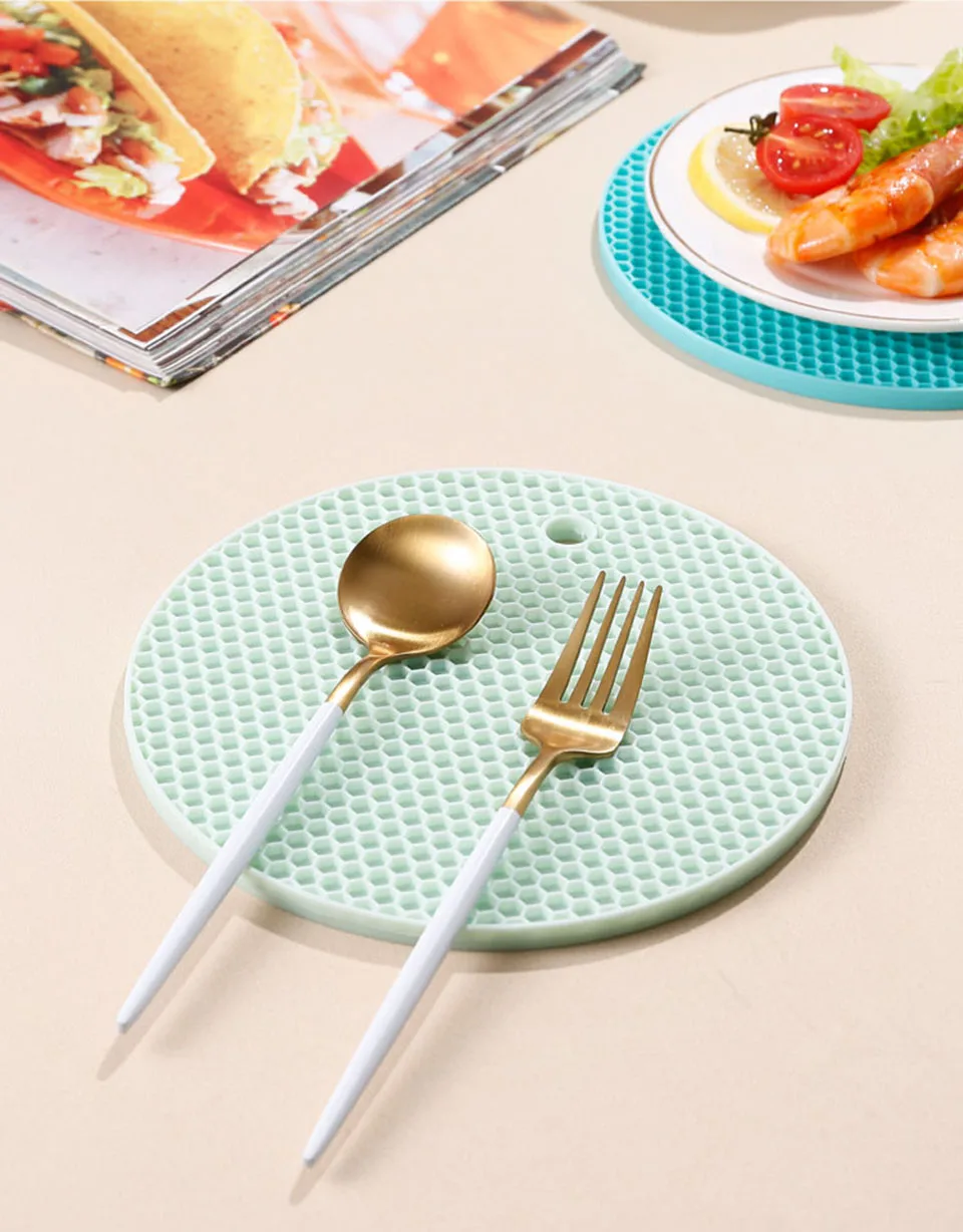 Круглая силиконовая салфетка с Сотами, нескользящий коврик с защито...