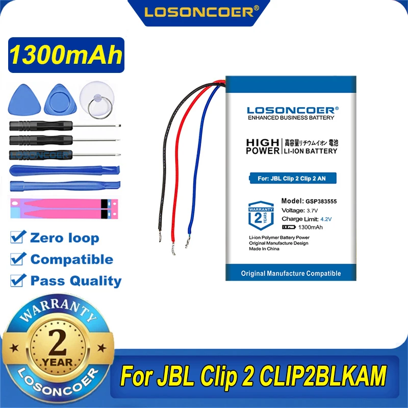 Аккумулятор LOSONCOER 1300 мАч GSP383555 для JBL Clip 2, Clip 2 AN, Clip 2blkam CS056US P04405201 P044052