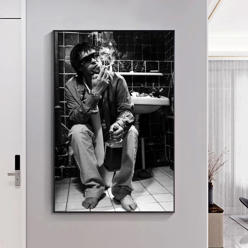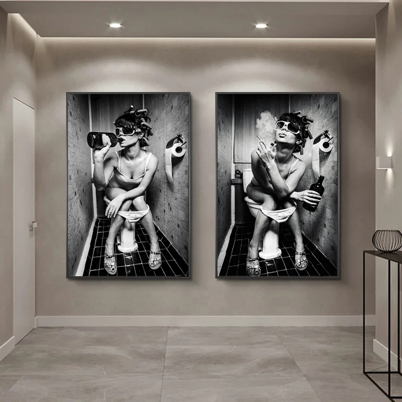Черно-белая привлекательная девушка, курительная, сидит в туалете, холст, картина, плакаты и принты, настенное искусство, женщина, картина, декор комнаты
