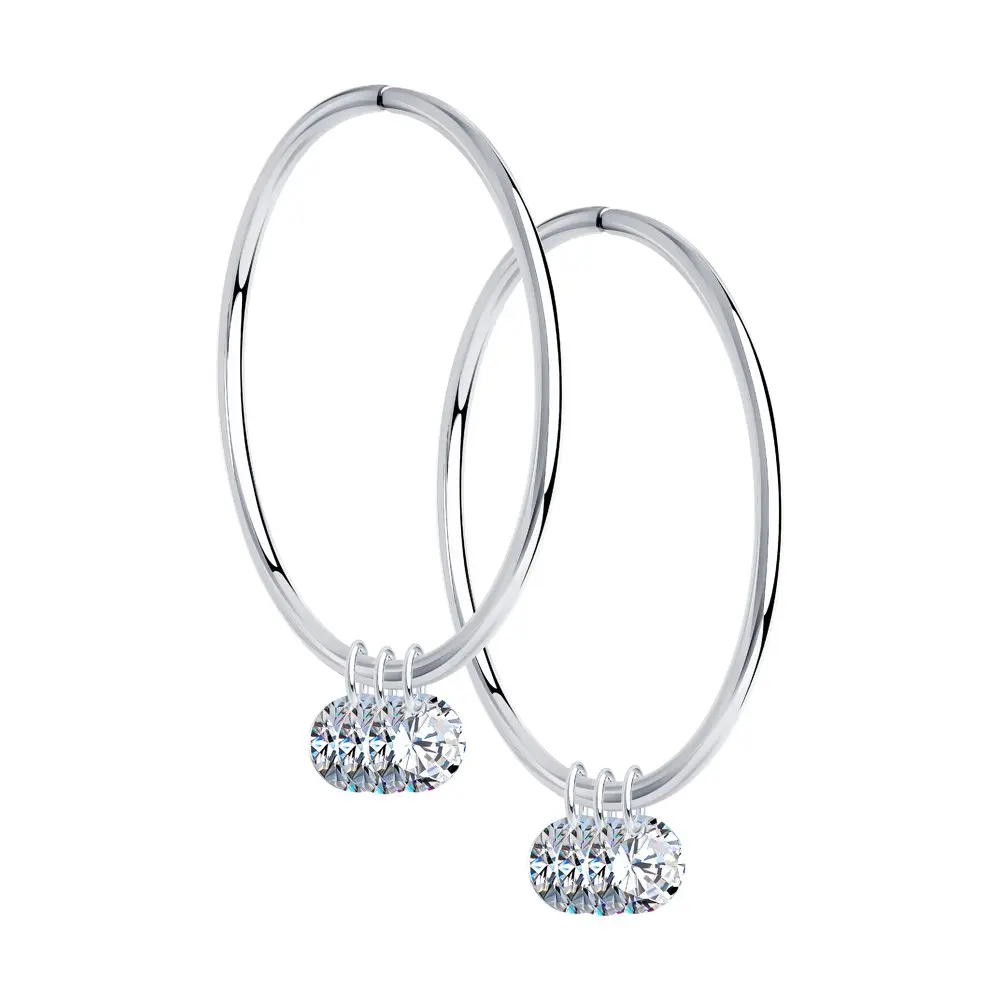 Серьги конго SOKOLOV из серебра с алмазной гранью, Серебро, 925, Же...