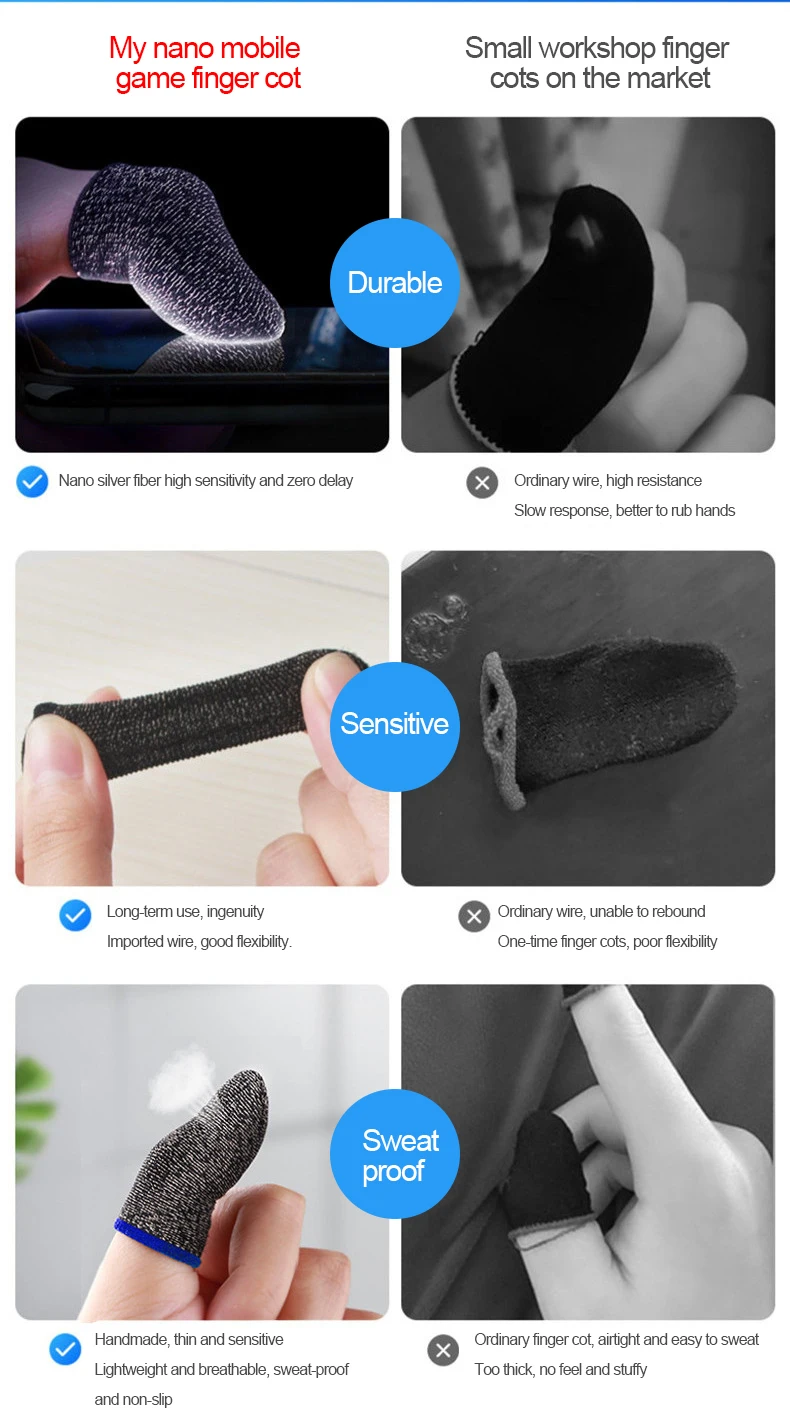 2. Высокая чувствительность: рукава из волокна делают его более чувствительным к экрану на мобильный телефон и удобным, что поможет вам улучшить игровой опыт