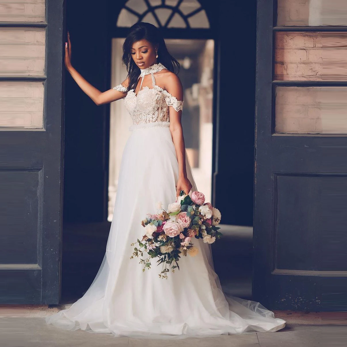 Очаровательные кружевные свадебные платья Aso Ebi, с коротким рукавом, без бретелек, с тюлевой юбкой, со шлейфом, Длинные свадебные платья