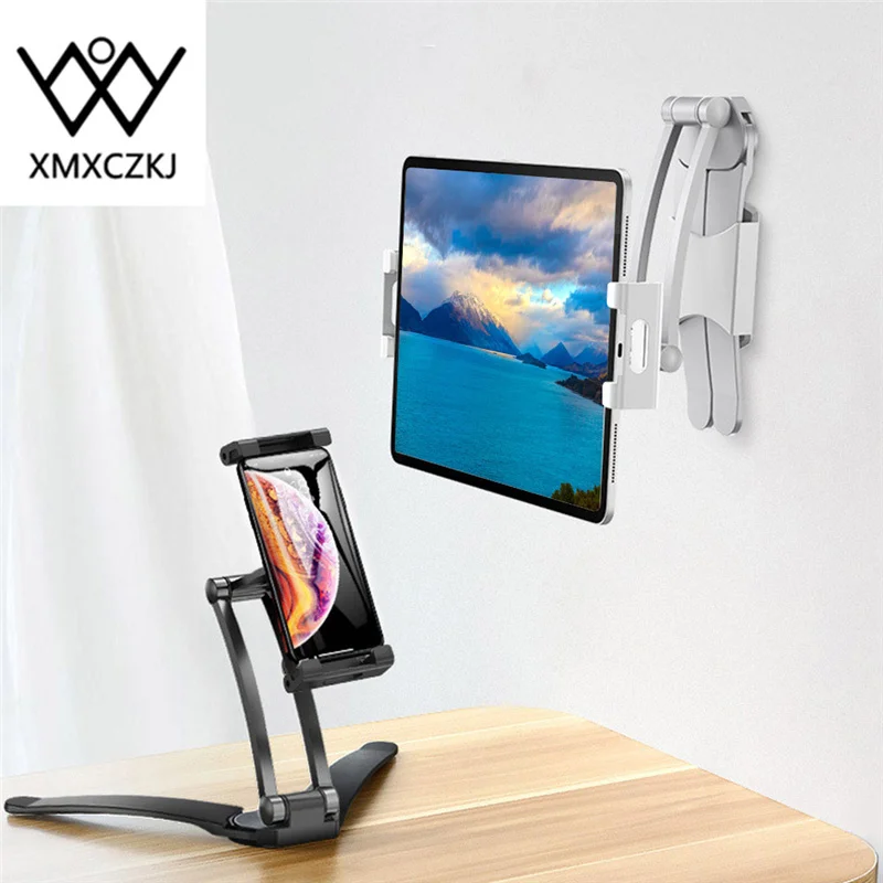 Алюминиевая кухонная Настольный телефон планшет подставка держатель 2 в 1 настенное крепление Регулируемый 12,5-19 см Ширина планшет держатель для мобильного телефона для iPad