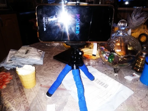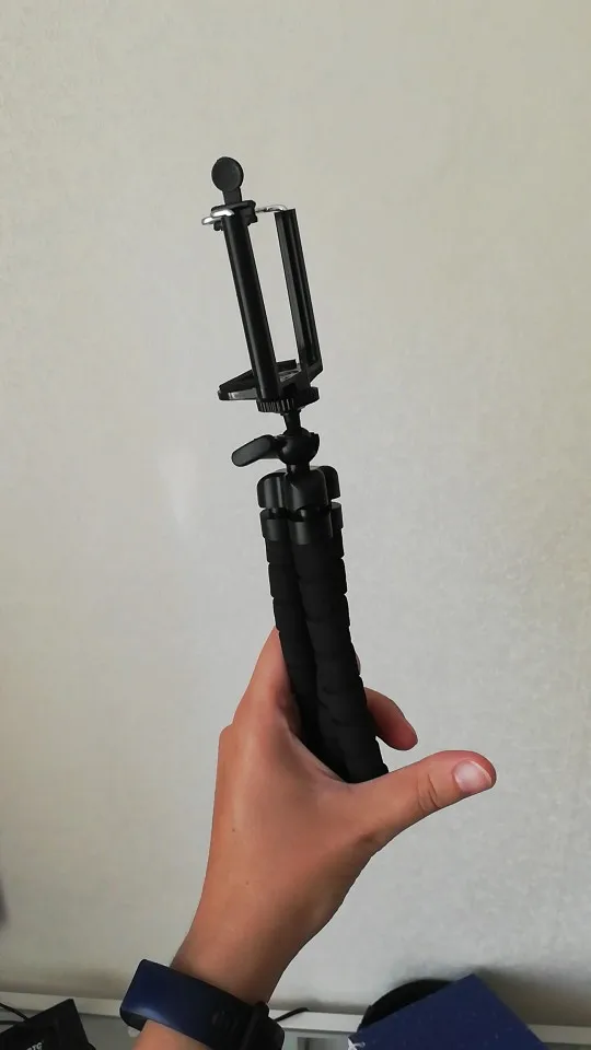 Ну вот получил я наконец то свою подставку на мой смартфон xiaomi redmi. Дошла за 15 дней до волгог. обл. моего района. Только когда я распаковал посылку и начал регулировать ножки и только дотронулся до ножки и тут одна ножка у подставки отвалилась. Я ничего не ломал только регулировать ножки стал как одна выпала значит такую выслали уже мне поломанную. Я посмотрел а гнездо для ножки оно было разщеплено значит ножка не будет держаться только если приклеить. Но остальное всë вроде целое. Но меня порадовало что фоткаться можно управляя пультом управления. Чтобы пульт работал нужна круглая тоненькая батарейка фото 2 и чтобы пульт сопряжëн был с блютусом так как управлять им надо через блютус . У меня блютус нашëл этот пульт сразу же. Ещë этим пультом можно когда музыку слушаешь звук прибавлять и убавлять тоже с пульта. Прикольно ваще супер. Я теперь фоткаться буду дистанционно. Жаль вот только что ножка одна поломанная оказалась поэтому 4 звезды. Я очень расстроен может закажу другую