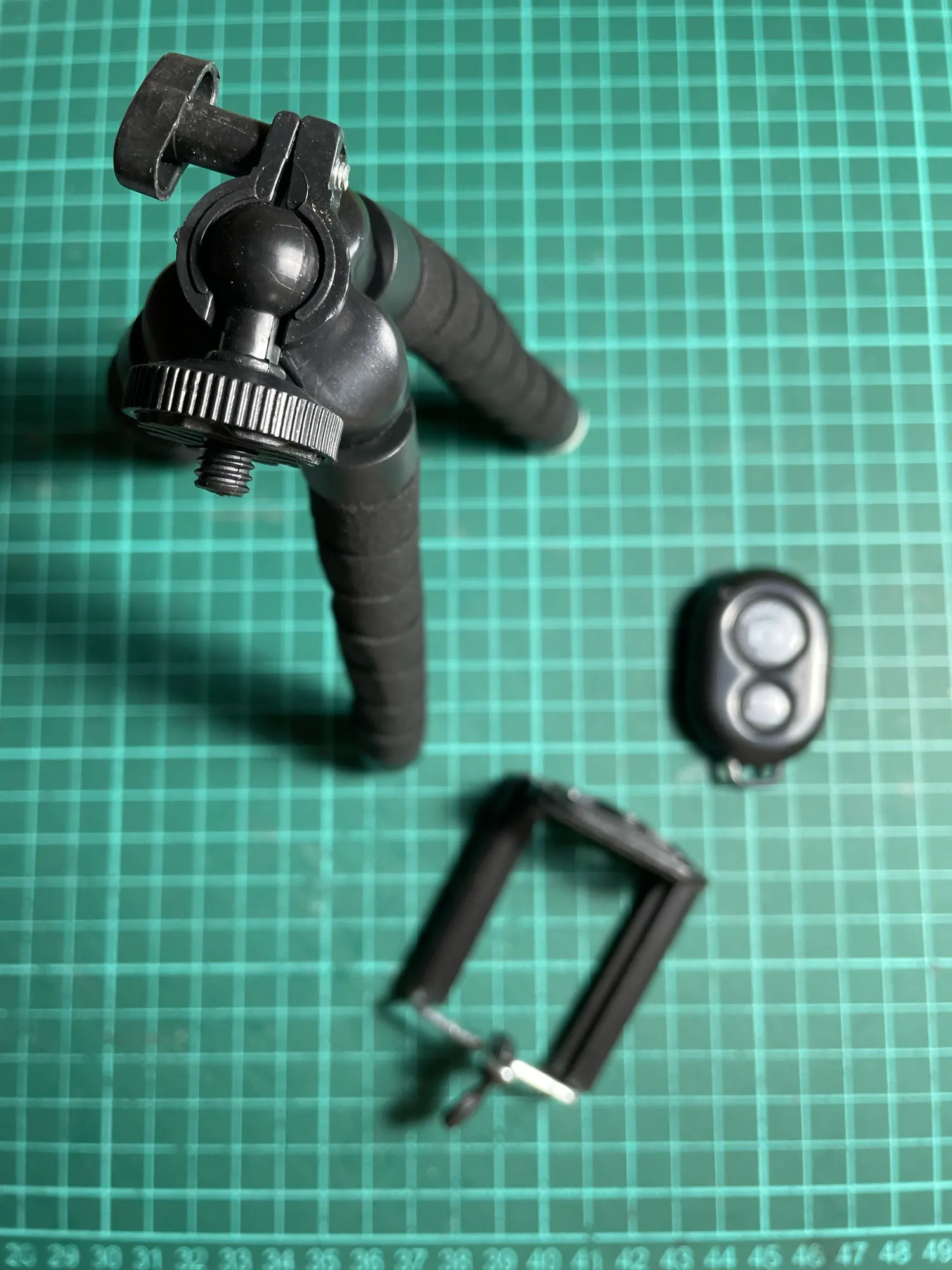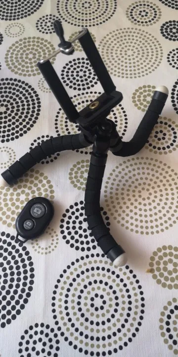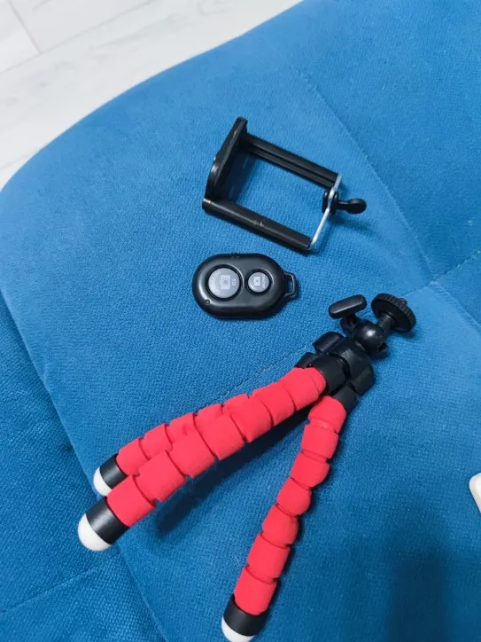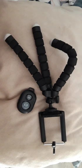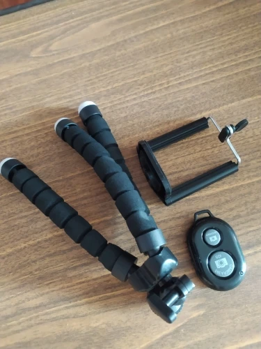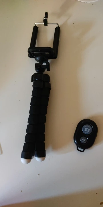 Штатив очень маленький и подходит для размещения телефона очень хорошо, пульт дистанционного управления не имеет батареи, но стоит своей цены