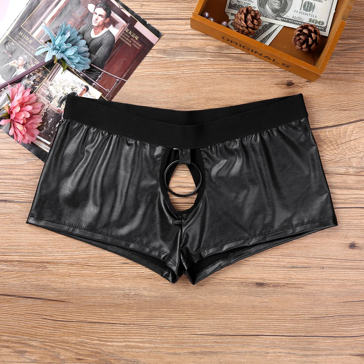 Для мужчин эротические латексные трусы, сексуальное нижнее белье, гей стеллаж для выставки нижнего белья для секс из искусственной кожи с низкой талией шорты-боксеры Hombre металлическое уплотнительное кольцо с отверстием для пениса