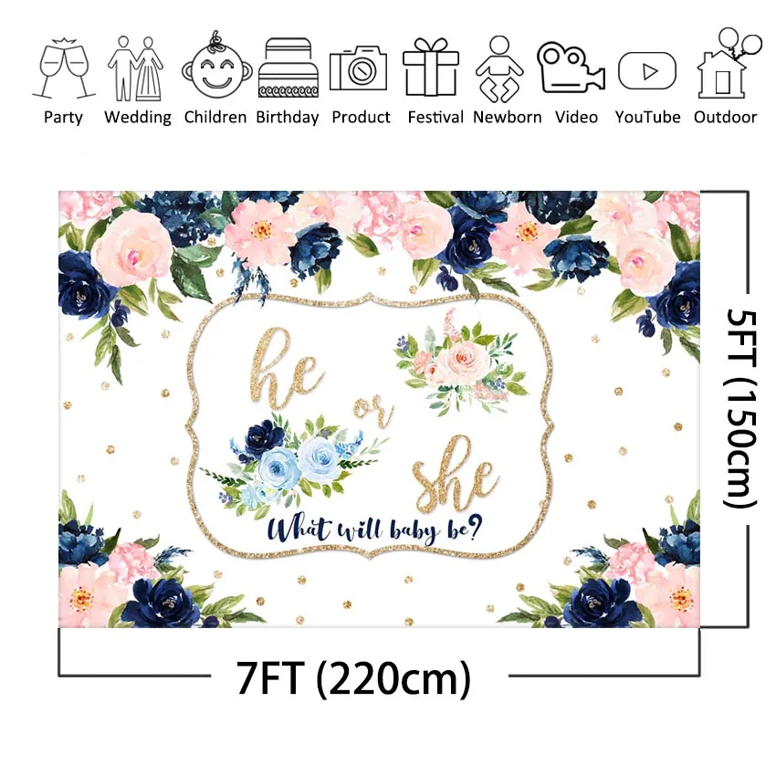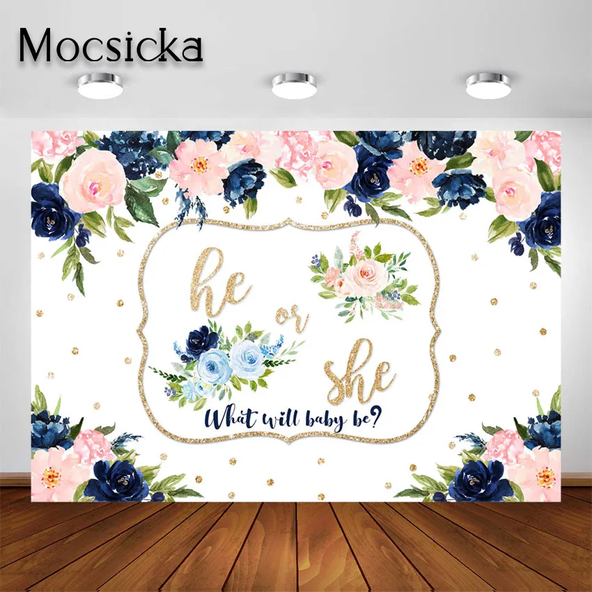 Mocsicka военно-морской флот и румяна Пол выявить Темно-синие Румяна Розовый цветочный он Пол раскрыть фон для фотосъемки