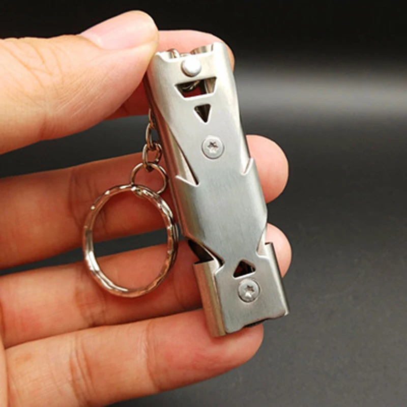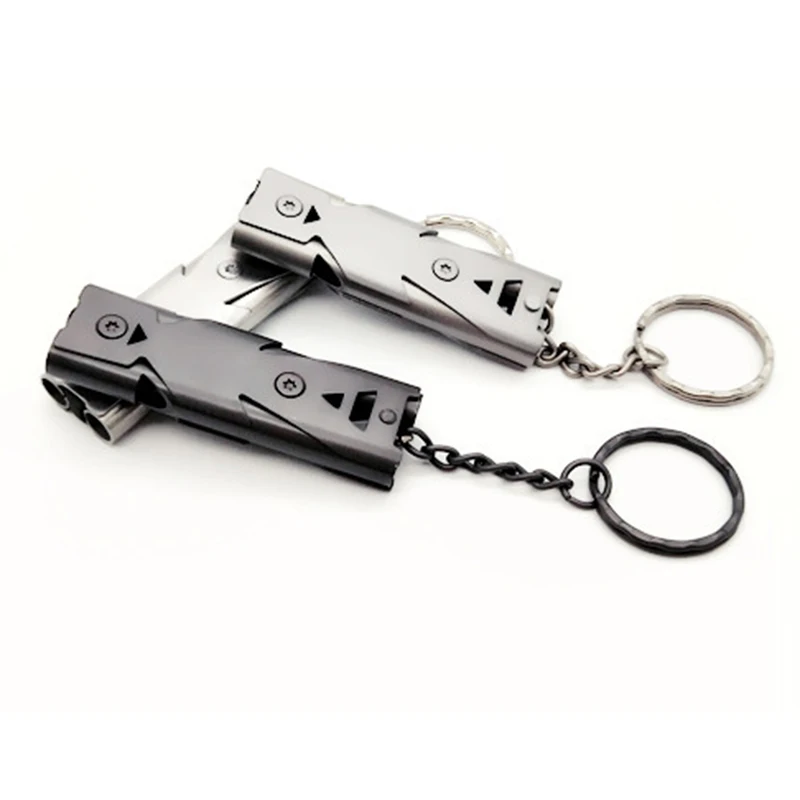 Свистки многофункциональные, из нержавеющей стали, с двойной трубкой, с высоким децибелом, для кемпинга, чрезвычайных ситуаций, 1 шт.