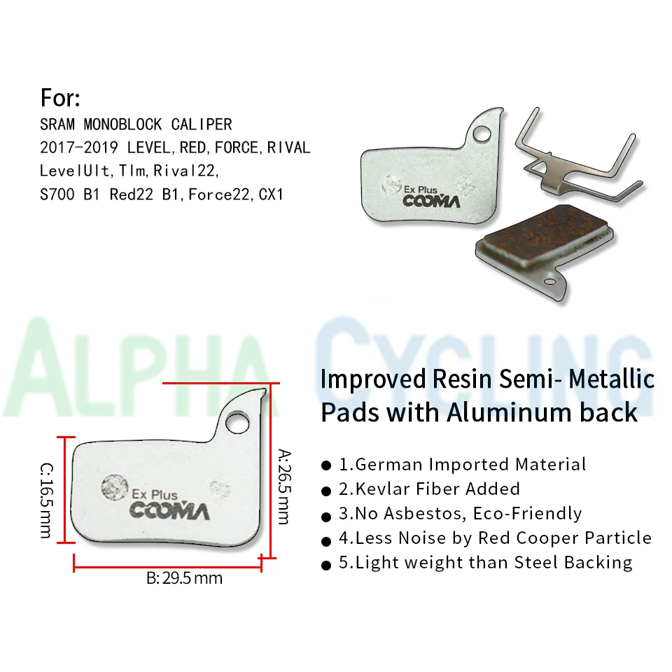 Полимерные колодки широко известны как органические или полуметаллические тормозные колодки, включая наши колодки EX Plus. Они изготовлены из различных волокон, таких как кевлар из искусственных волокон, минеральные волокна и металлические гранулы, удерживаемые вместе с помощью смолы. Очевидно, что фрикционный материал мягче, чем их полные металлические братья.Полимерные прокладки класса EX Plus, они использовали гораздо лучшее сырье, чем спортивные накладки EX. Прокладки были модернизированы до алюминиевого сплава, за исключением тех колодки для MAGURA, так как они должны быть прикреплены на магнитном поршне со стальной подложкой. Что касается волокон, все они являются премиальными по сравнению с спортивными накладками ex, чтобы помочь лучше рассеивать тепло и уменьшать шум.Плюсы:1. Чистые медные волокна для замены стали и латунных гранул в СПОРТ EX колодки2. Первая сила торможения сильнее, чем спортивные колодки EX3. Меньше крика и шума, чем спортивные EX колодки4. Перфорированный вес по сравнению с ультра, элитными и спортивными экс-подушечками