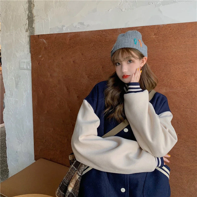 Вельветовая куртка для девушек на весну и осень, бейсбольная форма, куртка-бомбер, женская одежда, женская уличная одежда в стиле Харадзюку, свободная готическая одежда