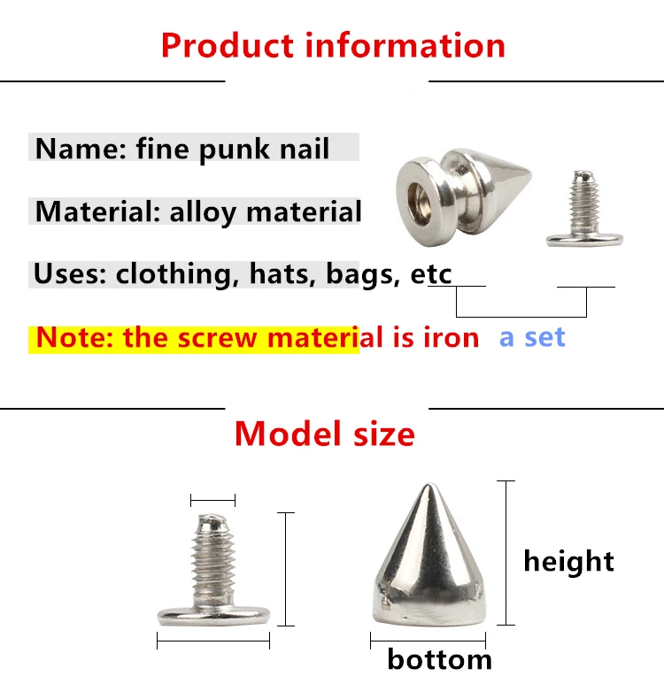 В переменного тока, 50-100 наборы для ухода за кожей Металл Панк острые утверждает винтовые заклепки шпильки поделки своими руками кожаный ремень ремешок носком с заклепками, с шипами Декор ногтей пряжки