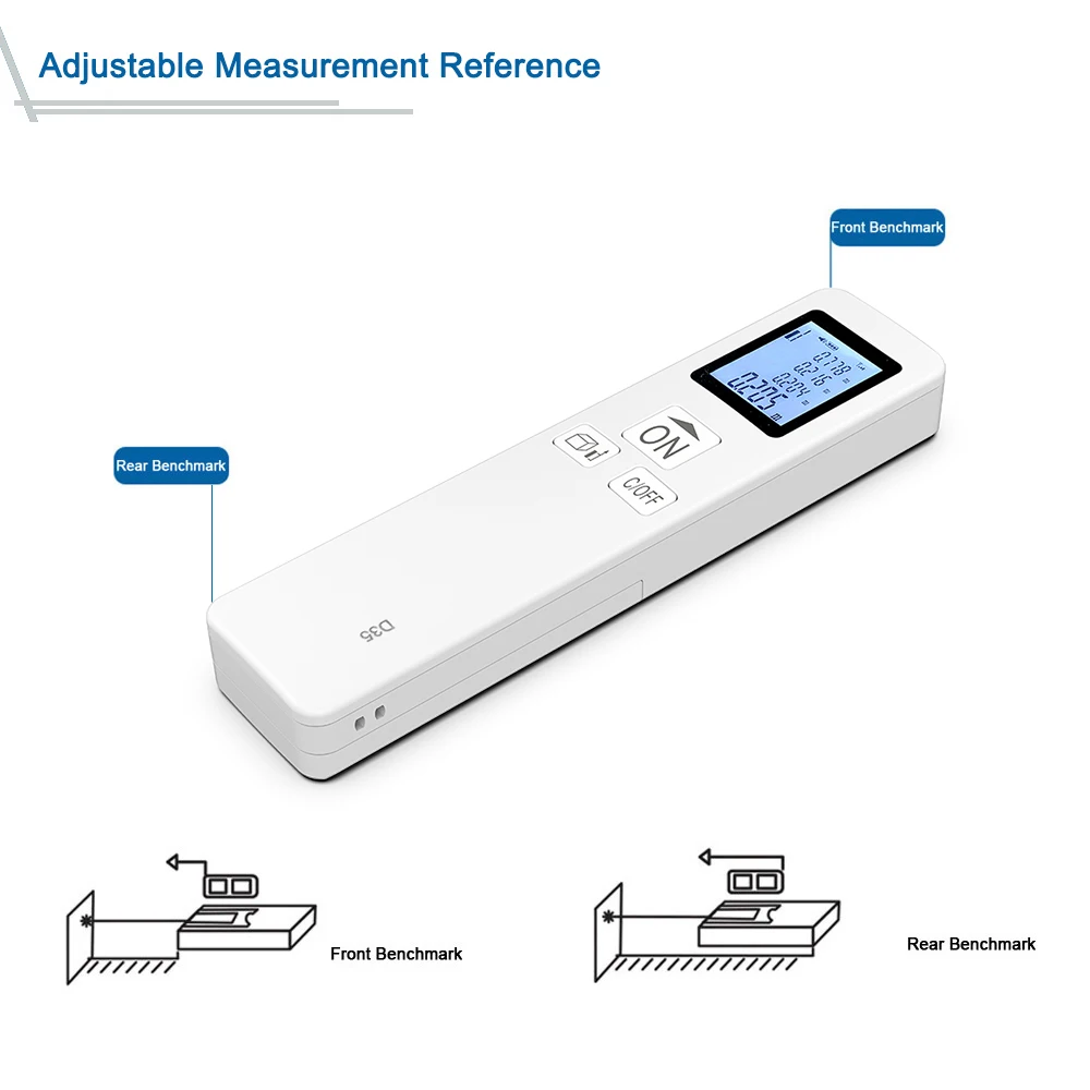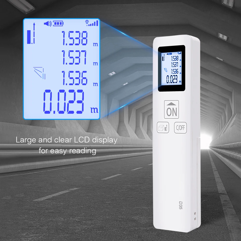 Хотите иметь карманный Профессиональный Лазерный дальномер с более высокой точностью? Попробуйте этот супер мини лазерный дальномер. Он может измерять расстояние, площадь и объем. Он также используется для непрямого измерения по теореме Пифагора. Простой в эксплуатации, точный в измерении, супер мини размер для вашей ладони, супер светильник для легкой переноски. Этот USB Перезаряжаемый лазерный дальномер, как превосходный измерительный инструмент, может быть широко использован в строительстве и промышленности, особенно в больших областях, таких как комнаты, квартиры, здания, недвижимости, фабрики, склады и т. Д. Особенности: Более высокая точность:Индикатор для измерения отметки данных/уровня заряда батареи/звукового сигнала/силы сигнала. Быстрое измерение расстояния, площади и объема с простой работой, 35 м Диапазон измерений и высокая точность: ± 3 мм. Улучшенная работа:Удобный и компактный дизайн обеспечивает отличный ручной опыт работы, ЖК-дисплей с подсветкой для легкого и четкого чтения. Легкое Таргетирование с яркой лазерной указкой. Несколько режимов измерения:Расстояние/площадь/объем/один/Макс и мин/Непрерывное измерение и 3 вида непрямого измерения по теореме Пифагора. Поставляется с ручным ремешком и портативным дизайном, удобным для переноски. Различные настройки:3 единицы измерения: m/in/ft, индикатор buzzer, ручное выключение/автоматическое выключение 45s без работы и функция автоматического отключения лазера 15s. Супер Мини карманный размер для портативного использования. Широкое применение:Может использоваться в строительстве и промышленности, особенно в больших областях, таких как комнаты, квартиры, здания, недвижимость, фабрики, склады и т. Д. Характеристики:Цвет: белыйМатериал: АБС-пластикДиапазон измерения: 0,03-35 мВремя измерения: 0,3-4sРасстояние: m/in/ftПлощадь блока: ммзс 2;/фтзс 2;Единица измерения громкости: m3m 3;/ft3m 3;Материал: АБС-пластикТочность: ± 3 ммТип лазера: класс II, длина волны лазера 620-670нм, <1 мВтОдиночное/Непрерывное измерение: ДаИзмерение площади: даИзмерение громкости: ДаТеорема Пифагора непрямые измерения: ДаМакс/мин дисплей измерения: ДаИндикатор зуммера: ДаКонтрольный показатель: передний/заднийСрок службы батареи: 3000 раз для одного измеренияВремя работы лазера: 15sАвтоматическое выключение: 45sПитание: 2*1,5 V AAA батареи (не входит в комплект)Рабочая температура: 0 ~ 40 °C / 32 ~ 104 °FТемпература хранения: -20 ~ 60 °C / -4 ~ 140 °FРазмер изделия: 62*26*16 мм/2,4*1,0 * 0.6inТовар Вес: 23 г/0,8 ozПосылка Размеры: 15,6*5,6*3,2 см/6,1*2,2 * 1.3inПосылка Вес: 80 г/2,8 унции Посылка:1 * Лазерный дальномер1 * ручной ремешок1 * Подарочная коробка1 * Руководство пользователя (на английском языке)