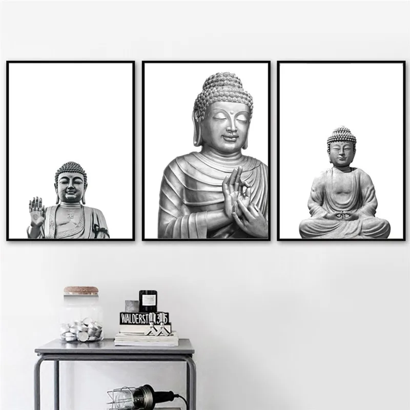 Буддийские плакат Wall Art Холст Картины статуя Будда Шакьямуни чер...