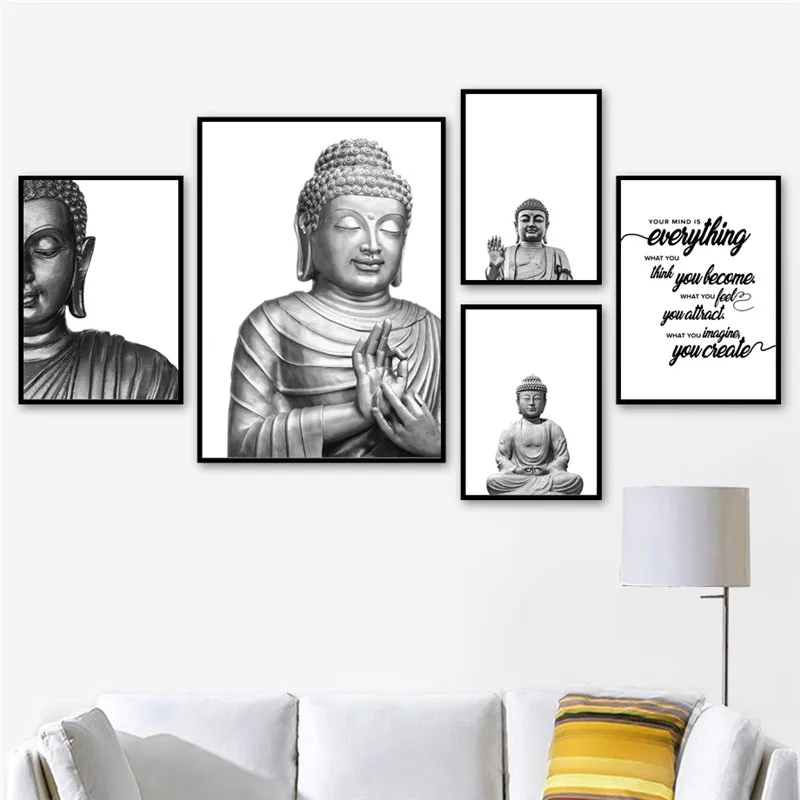Статуя Будды, цитаты, настенное искусство, холст, живопись, черно-б...