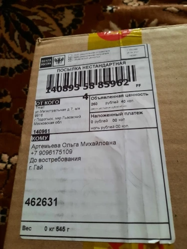 Страна: RU Доставка: Tmall Почта России - посылка обычная 10.04.2021