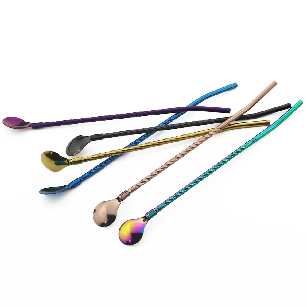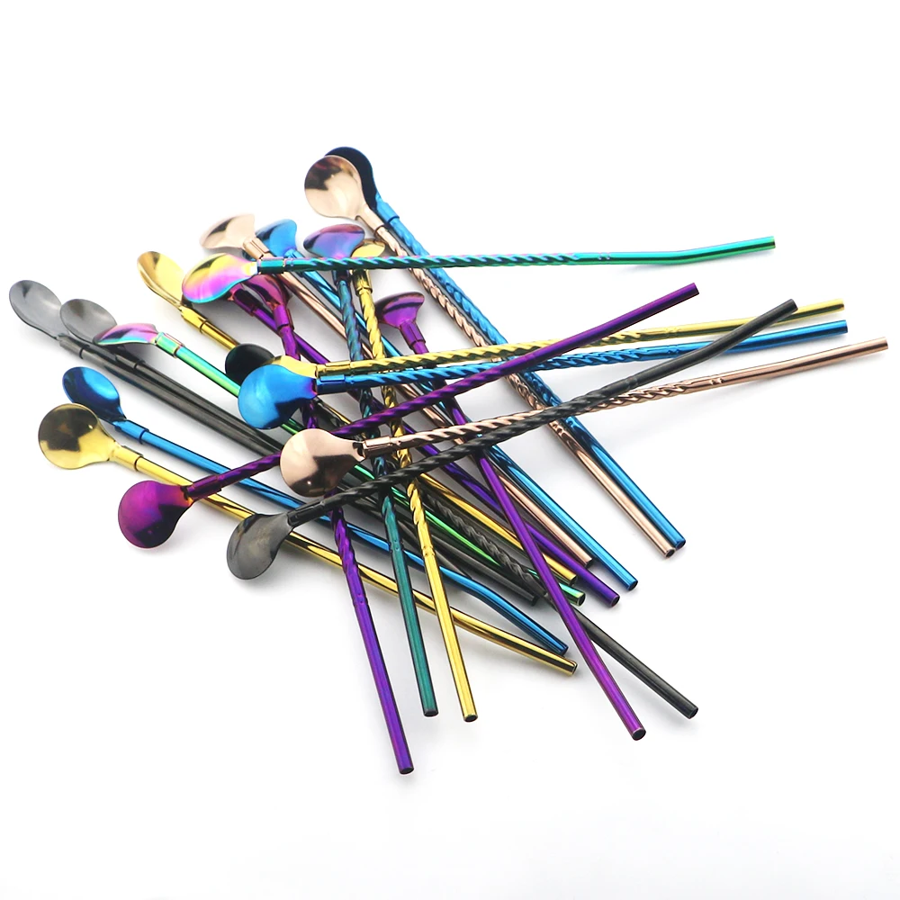 Ложки соломенные прямые многоразовые из нержавеющей стали, 7 шт.